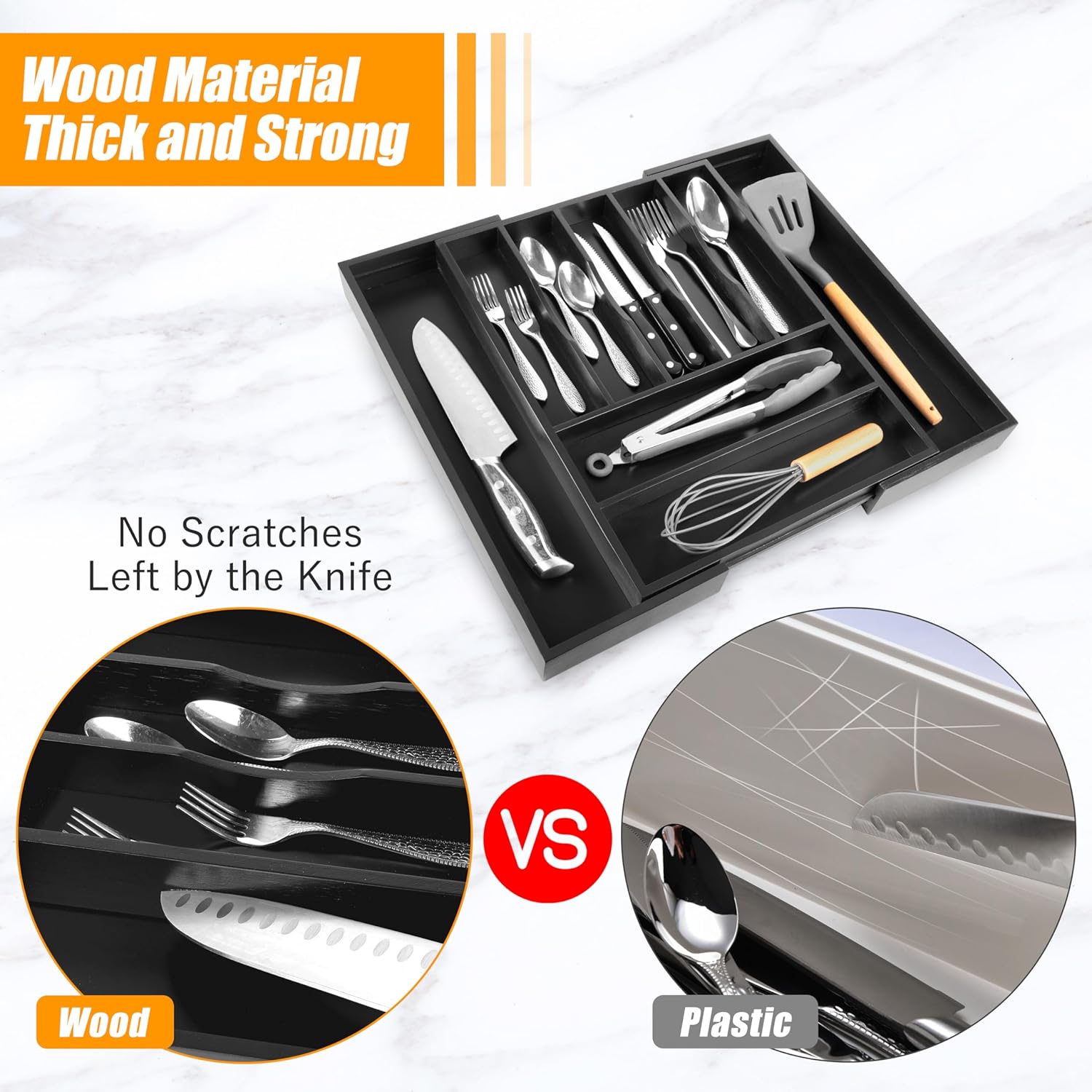 - â ăQuality - Deep Compartments & Reinforced BaseăOur utensil drawer organizer features compartments with a depth of 1.9 inches, helping maximize drawer space and perfect for storing more essential tools and gadgets. The utensil silverware drawer organizer comes with a reinforced base, ensuring durability for long-term use, and is ideal for supporting the weight of heavy-duty utensils and knives. Keep everything you need conveniently at hand while cooking, neatly visible, and easy to grasp when preparing the next meal in the kitchen.