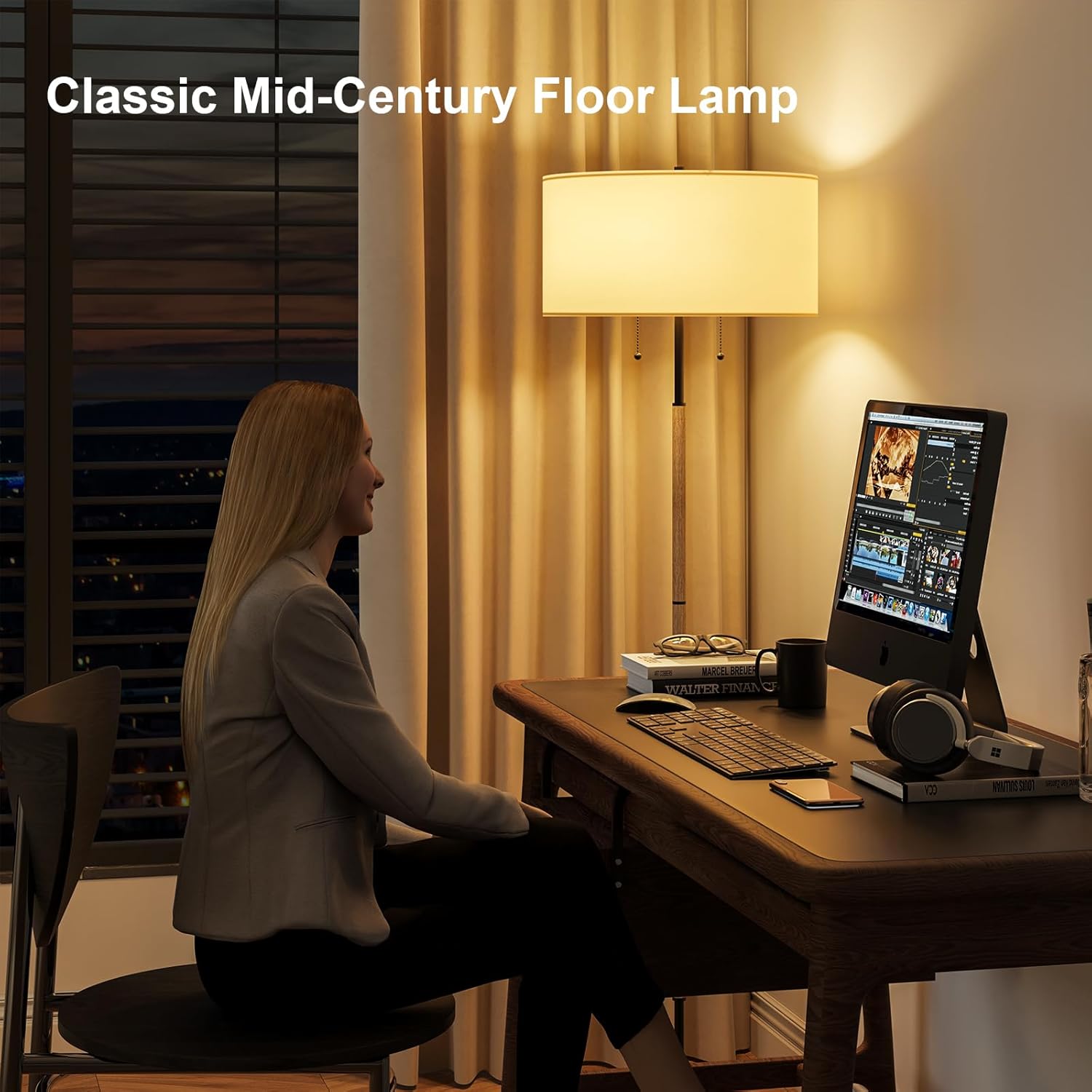 2-Light Floor Lamp, Mid Century Floor Lamp with White Fabric Shade, Standing Lamp Tall Lamp for Living Room Bedroom, 3 Color Temperatures 9W Bulb Include