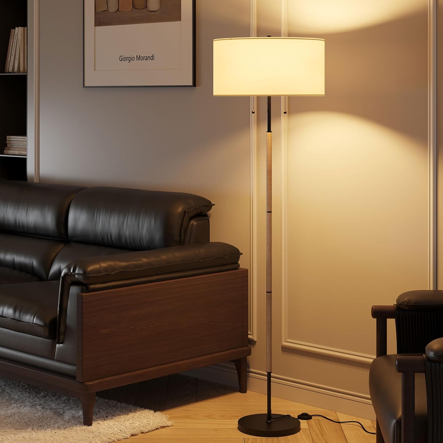• ELEGANT E26 LAMP SOCKET DESIGN - This living room lamp has a built-in gold dual E26 Socket design with a drawstring zipper to turn the lamp on/off and change the lamp's color. Each drawstring zipper can control one bulb individually so that you can get bright light from one light. It also contains a foot switch (Note the foot switch is only used to turn the floor lamp on or off)