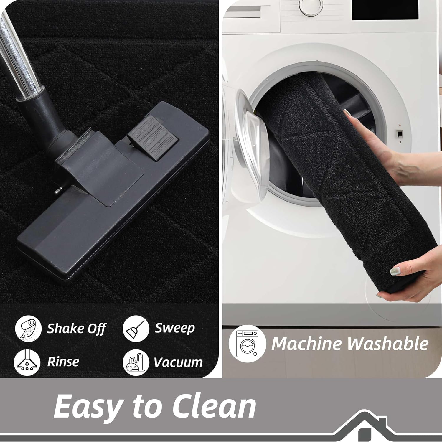 - Easy to Clean: The stain and fade resistant Polyester carpet surface can be easily cleaned by a broom or vacuum cleaner. For a deeper clean, machine wash separately in cold water, using mild detergent. Tumble dry, low heat