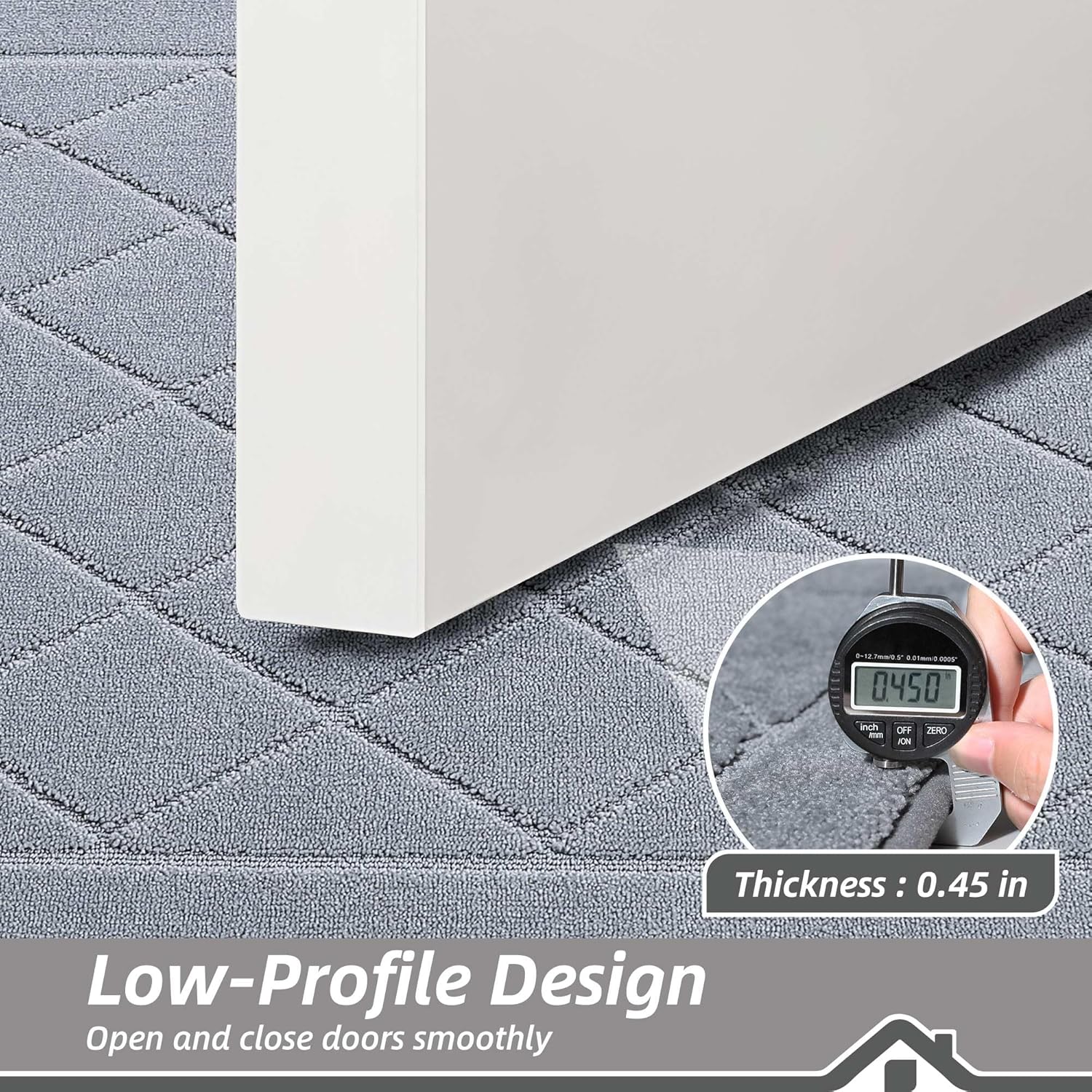 - Stylish and Low Profile Design: Fashionable geometric patterns are suitable for most kinds of home dรฉcor. Our doormats measure 24" x 36" x 0.45", low-profile design and reinforced overlock edges to ensure that doors won't get stuck or the door rug go curling. Note: Please confirm the height of the door gap before purchasing