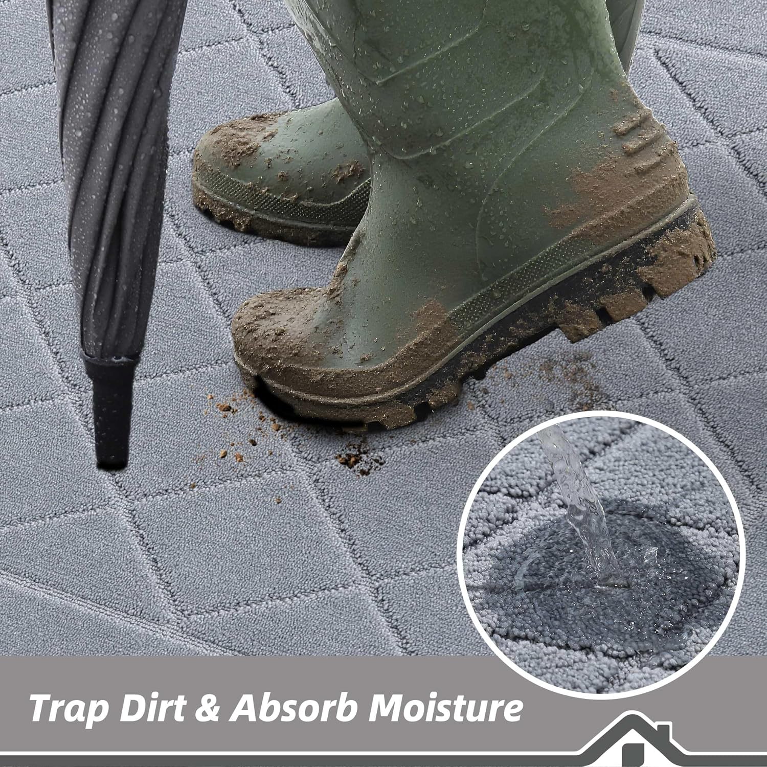 - Trap Dirt and Moisture: Door mats are made of premium Polyester and extremely dense yarns, which are extremely absorbent and stain-resistant. They absorb moisture well and quickly and also scrape dirt off the shoes, keeping the floors clean and dry. Widely used in any weather, especially rainy, snowy or muddy weather. Suitable for front door, back door, entryway, indoor entrance, etc.