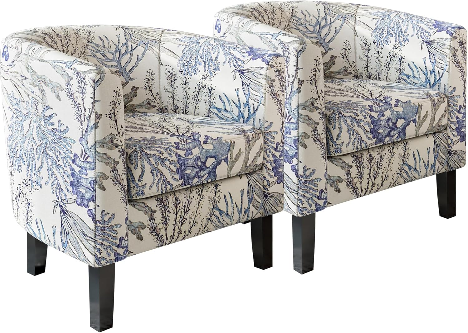 BELLEZE Living Room Chairs Set of 2, Linen Round Accent Barrel Chairs, Club Tub Sofa Chairs for Bedroom, Corner Chairs with Flared Legs and Cozy Soft Padding - Highland (Blue Coral)