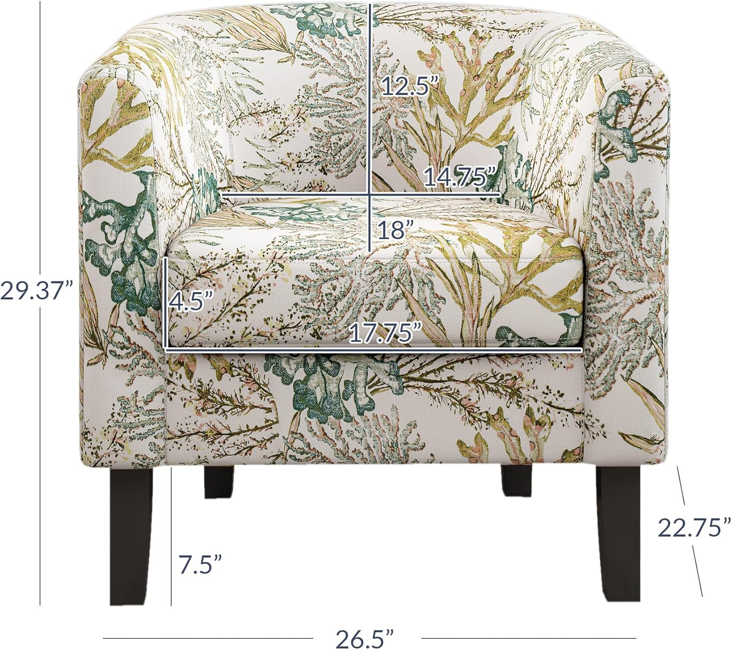 BELLEZE Living Room Chairs Set of 2, Linen Round Accent Barrel Chairs, Club Tub Sofa Chairs for Bedroom, Corner Chairs with Flared Legs and Cozy Soft Padding - Highland (Green Coral)