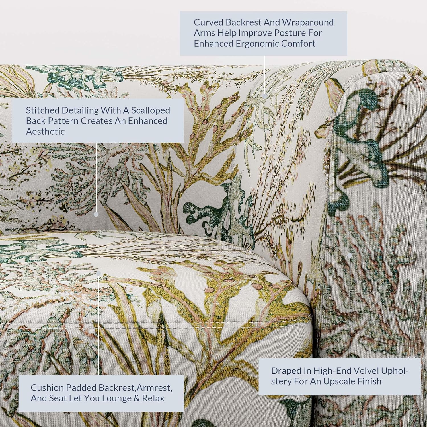 BELLEZE Living Room Chair, Linen Round Accent Barrel Chair, Club Tub Sofa Chair for Bedroom, Corner Chair with Flared Legs and Cozy Soft Padding - Highland (Green Coral)