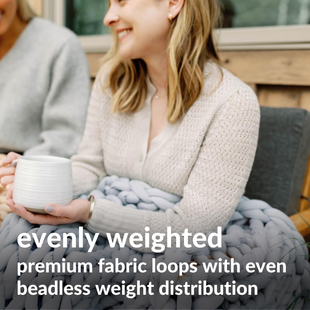 - WHISPER SOFT EMBRACE: No more sleep disruptions from noisy glass beads. Our beadless Nuzzie chunky blanket uses a plush fabric filling that stays uniform, presenting both visual charm and tactile comfort. Night after night, sink into the calming hug of an evenly distributed weight.