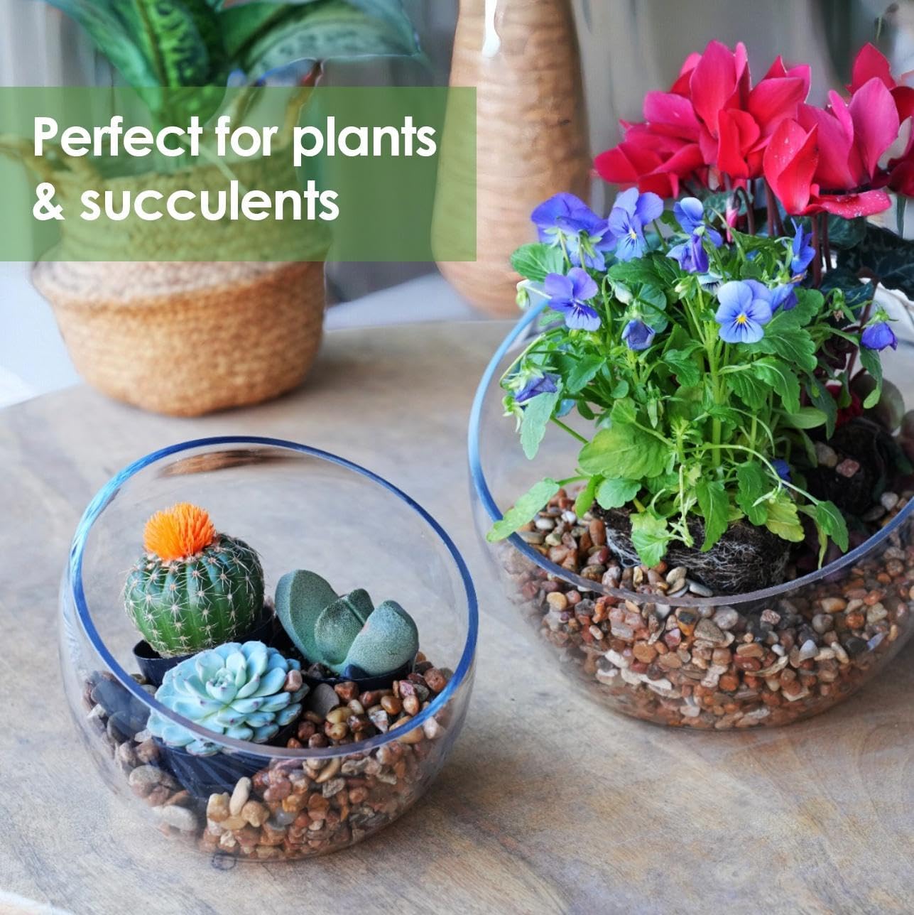 Craft And Party, Slantted Glass Cut Bubble Bowl, 8.5" Height x 10" Width Slantted Bubble vase for Terraium, Flower vase Centerpiece