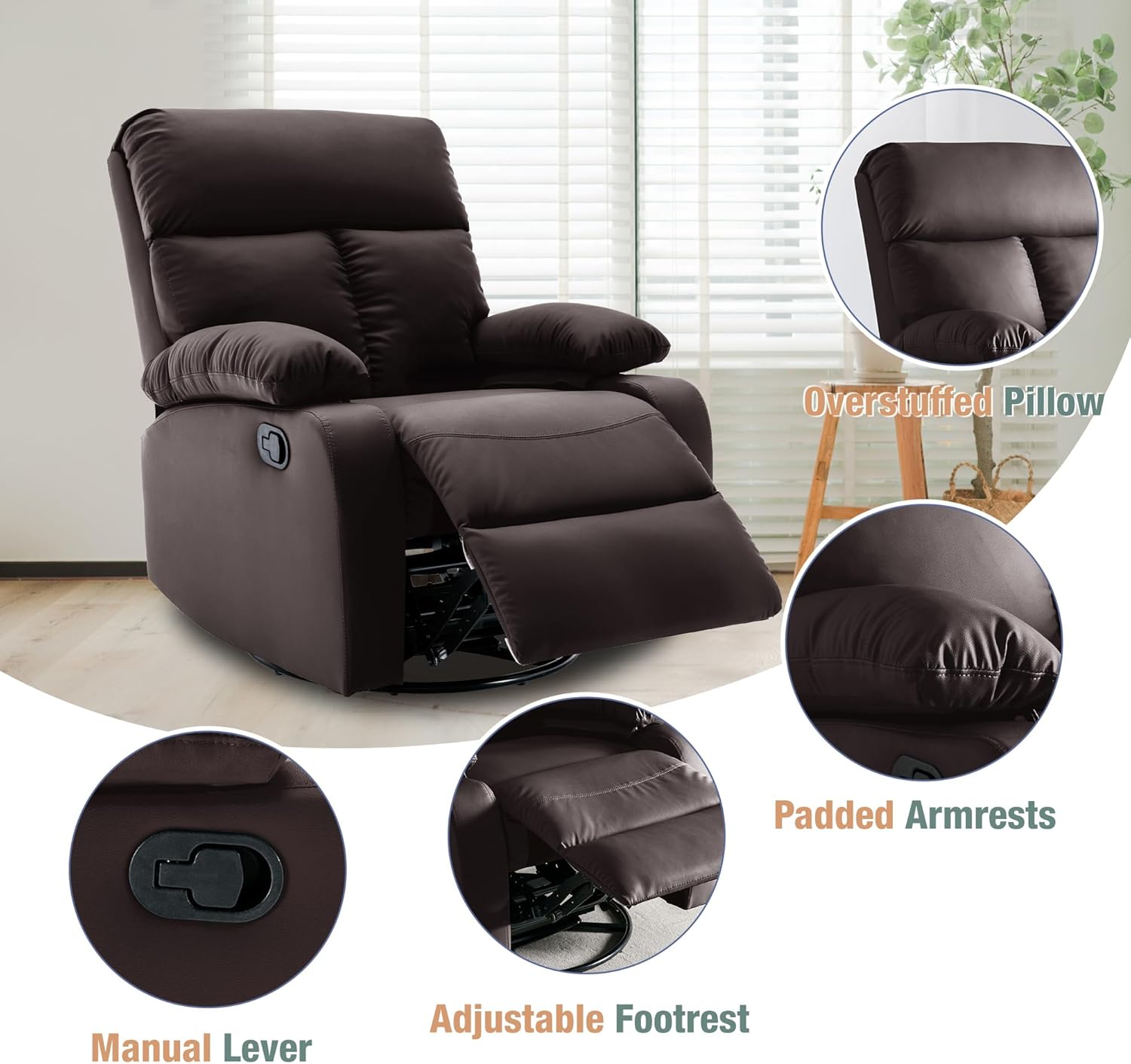 Swivel Rocker Recliner, Rocking Recliners Chair for Small Spaces, Small Rocker Recliner Chair, Nursery Rocking Chairs for Living Room, RV, Nursery, Brown
