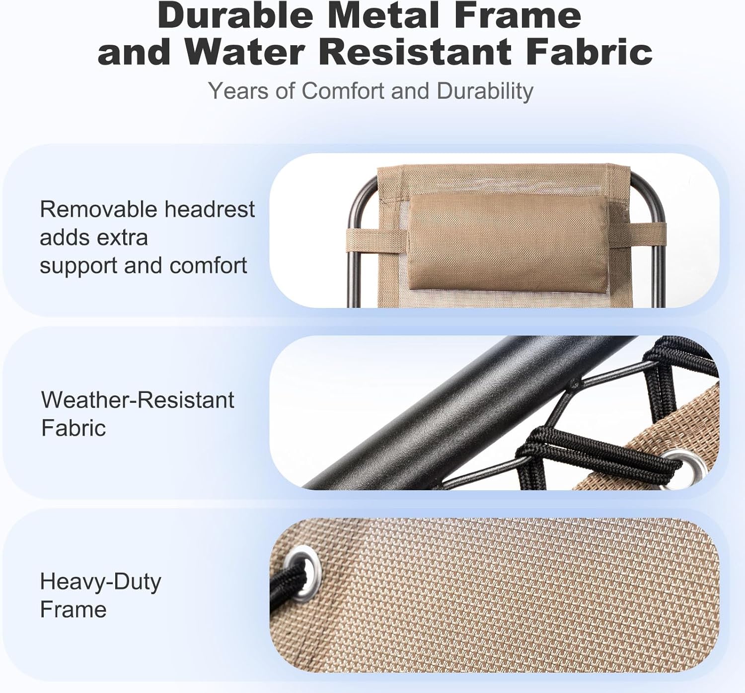- DURABLE AND LONG-LASTING: With a high weight capacity of 300 pounds and flexible, low-wear textilene fabric, our Lounge Chairs are built to last and provide years of comfortable relaxation.