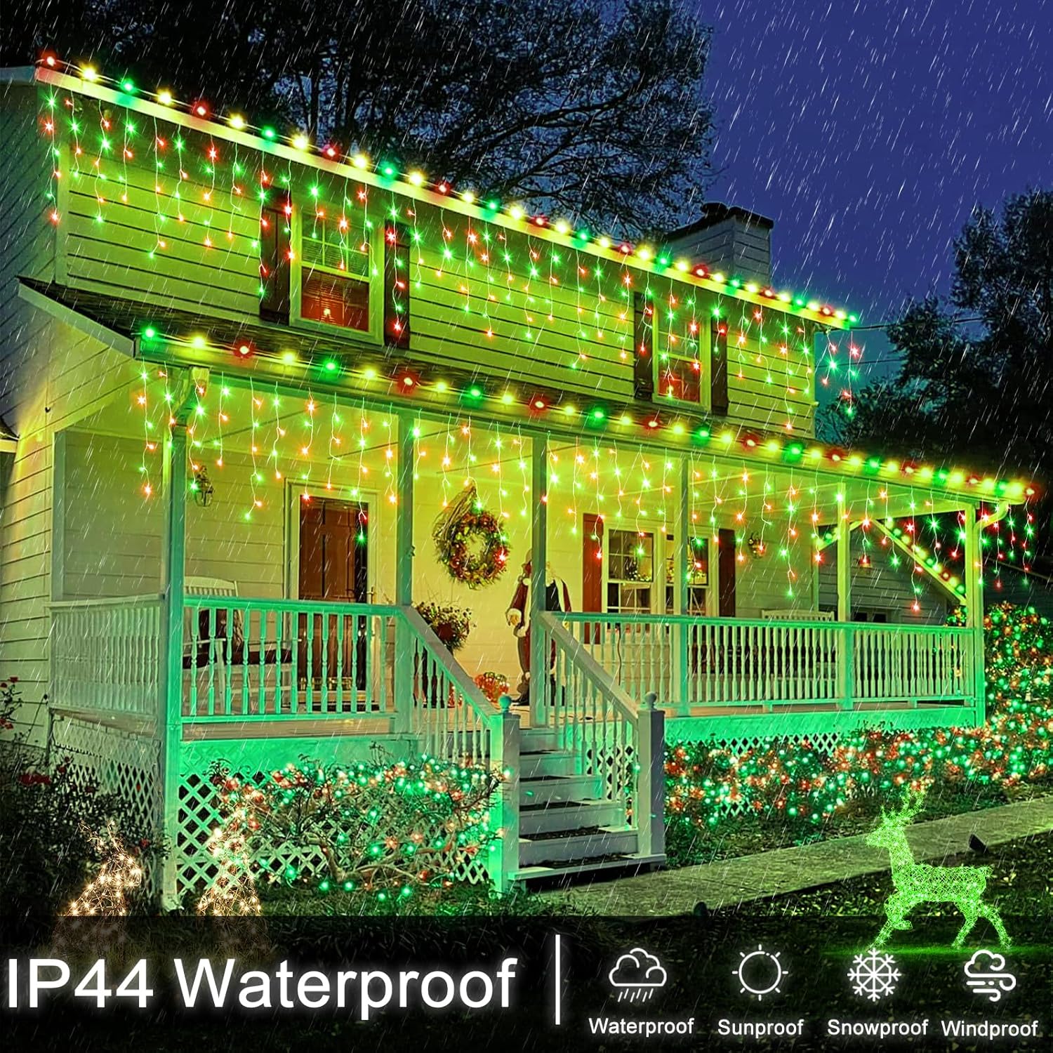 - Waterproof&UL certified: The icicle Christmas lights are IP44 waterproof,which is perfect for outside decoration and can work normally even in harsh weather. Christmas fairy lights has approved UL Certification,output voltage of the Christmas icicle lights is 29VοΌit's completely safe to touch.These icicle string lights are made by 100% high-quality copper wire,it will not overheat after many days of usage.
