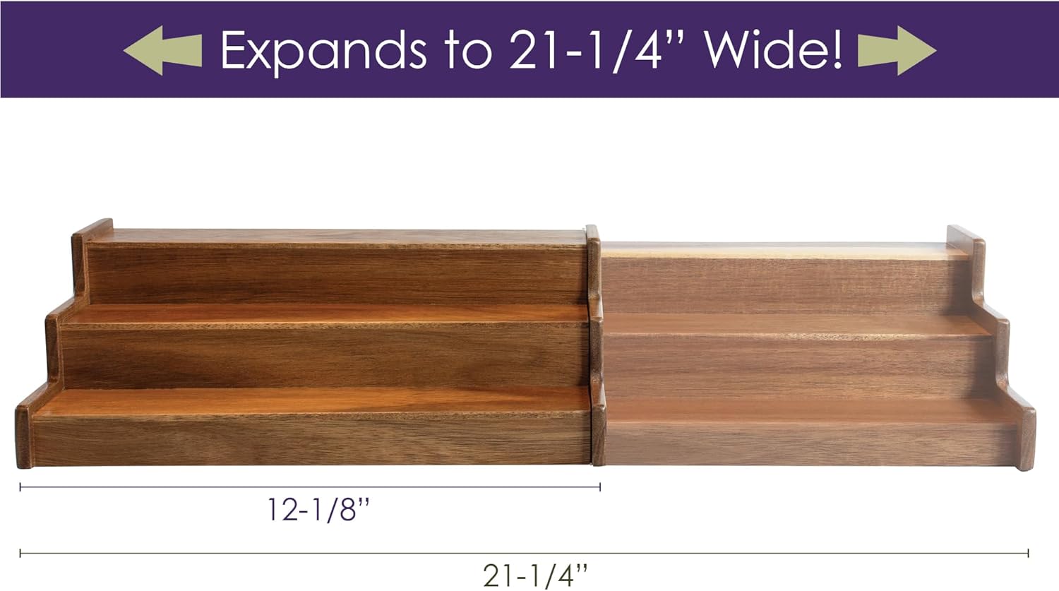 Acacia Wood 3 Tiered Spice Rack, 3 Tier Spice Organizer for Cabinet or Kitchen