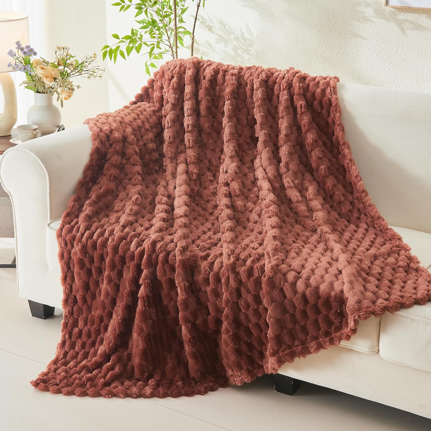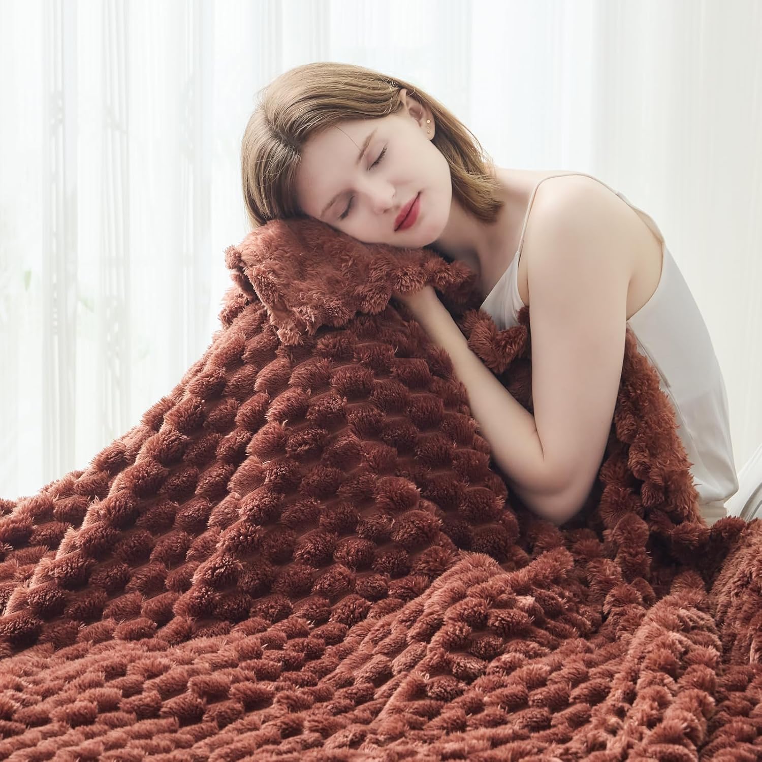 NEWCOSPLAY Super Soft Throw Blanket Coffee Premium Silky Flannel Fleece 3D Clouds Stylish Jacquard Lightweight Bed Blanket All Season Use 350GSM (Coffee, Throw(50"x60"))