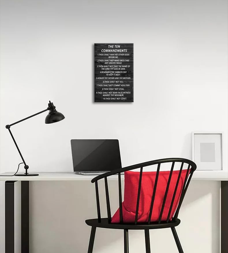 Motivational Wall Art Office Decor The Ten Commandments Christian Religion Pictures Theme Inspirational Canvas Posters Prints Framed for Bedroom Living Room Wall Decor Artwork Framed [12''Wx 18''H]