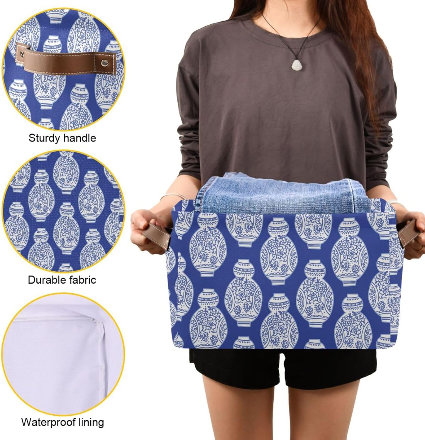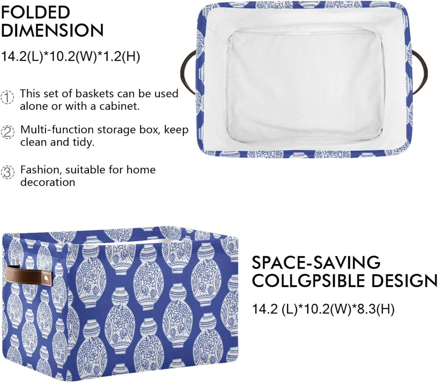 susiyo Storage Baskets for Shelves Organizer Baskets with Metal Frame Closet Storage Bins Fabric Bins Cubes with PU Handles for Organizing Shelf Nursery Toys 2 PACK,Blue Chinoiserie Vases