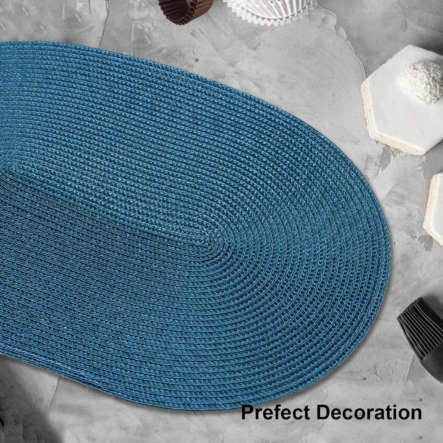 AHHFSMEI Placemats Set of 6 for Dining Table Washable Woven Vinyl Non-Slip 18x12 inches Placemat Heat-Resistant Durable Table Mats for Dining Table Easy to Clean (Oval Blue, 6)
