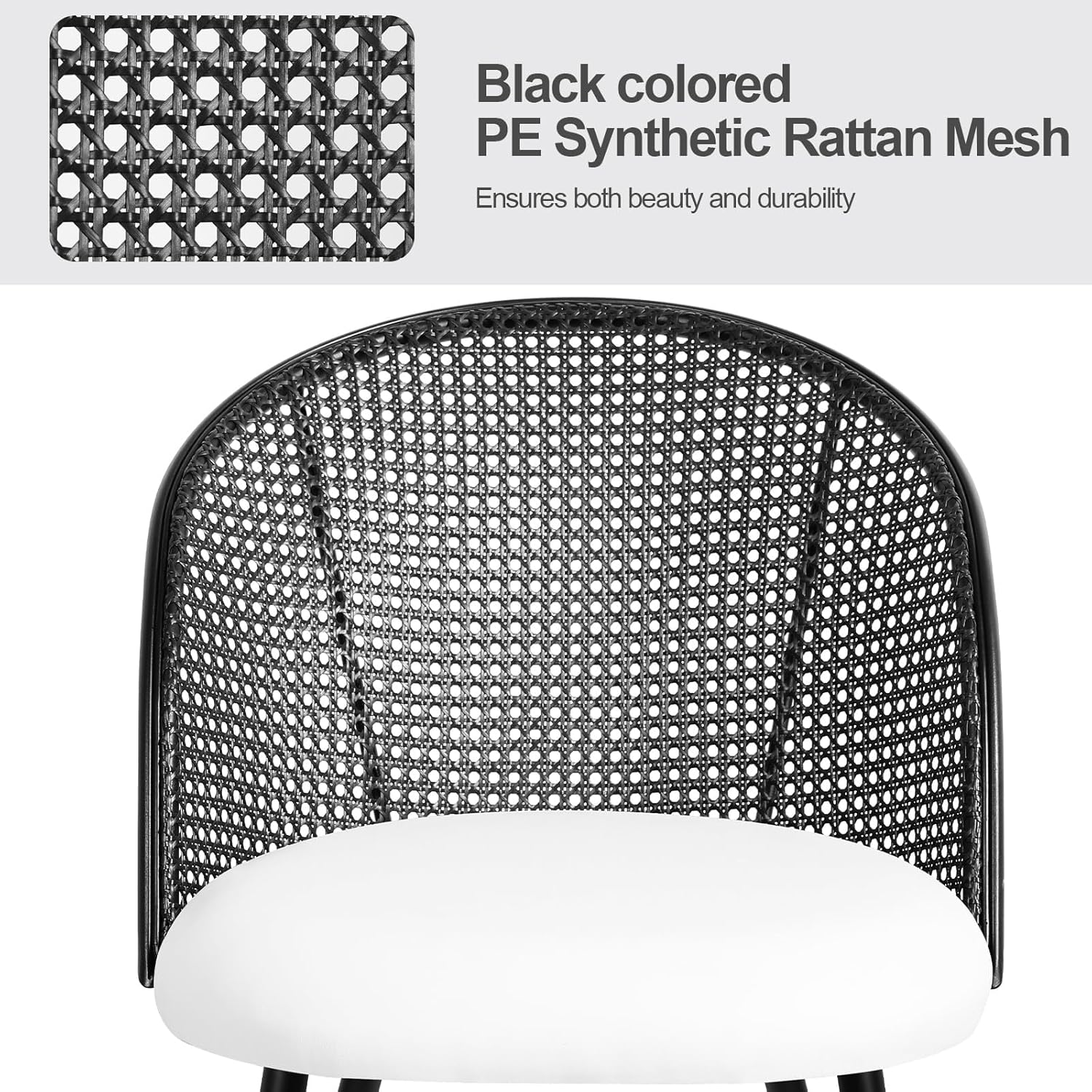 - 【Modern Mid-Century Style】Embrace timeless elegance with these dining chairs set of 2 featuring a sleek black rattan backrest. The powder-coated black metal legs add a contemporary touch, while the intricately crafted rattan cane back brings a classic charm, creating an inviting atmosphere in any dining space
