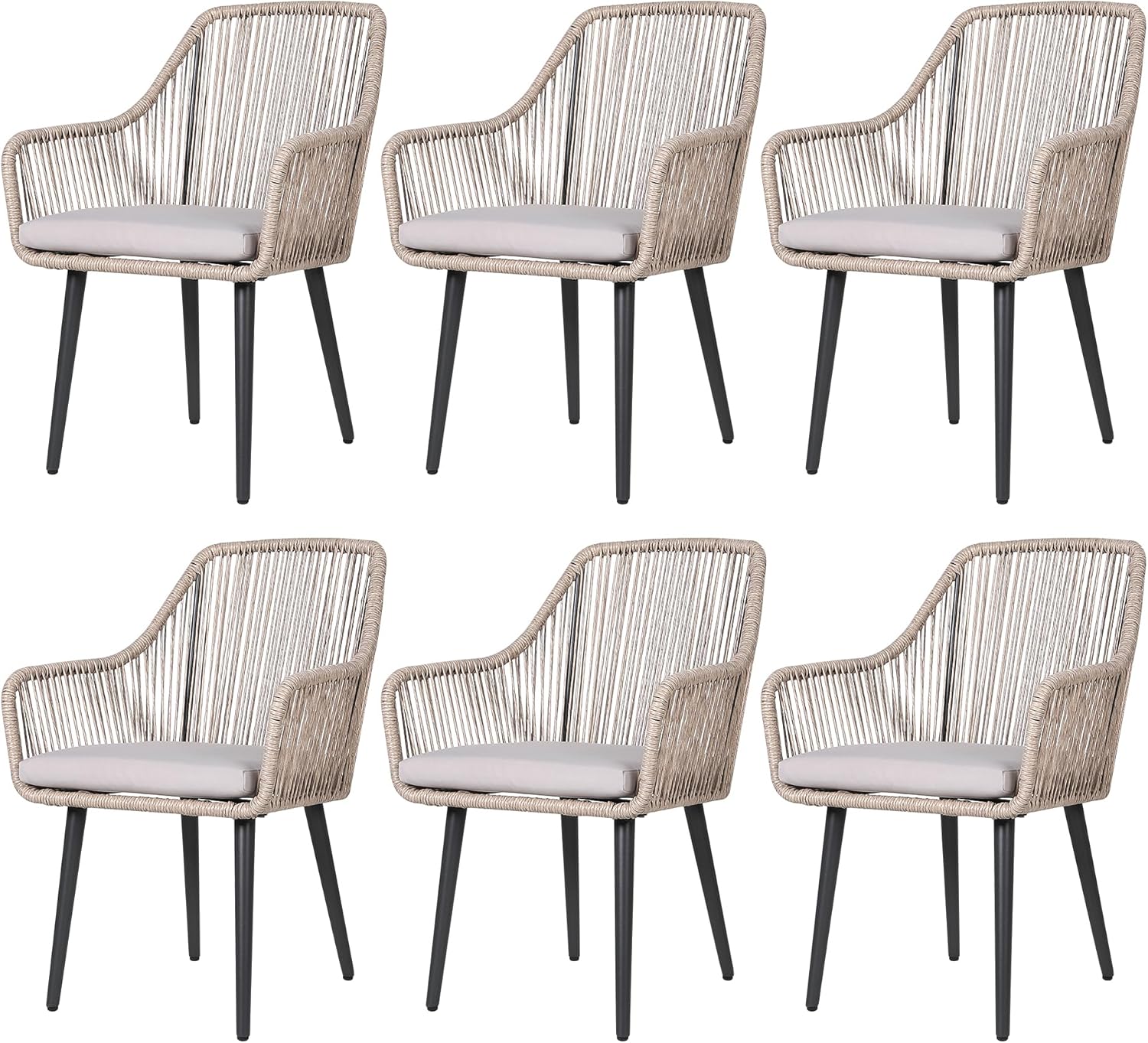 Patiorama Outdoor Dining Chairs, Patio Dining Chair Set of 6, All-Weather Woven Rope Rattan Chairs, Outdoor Dining Wicker Chairs with Armrests for Indoor Balcony Pool Backyard(Tan)
