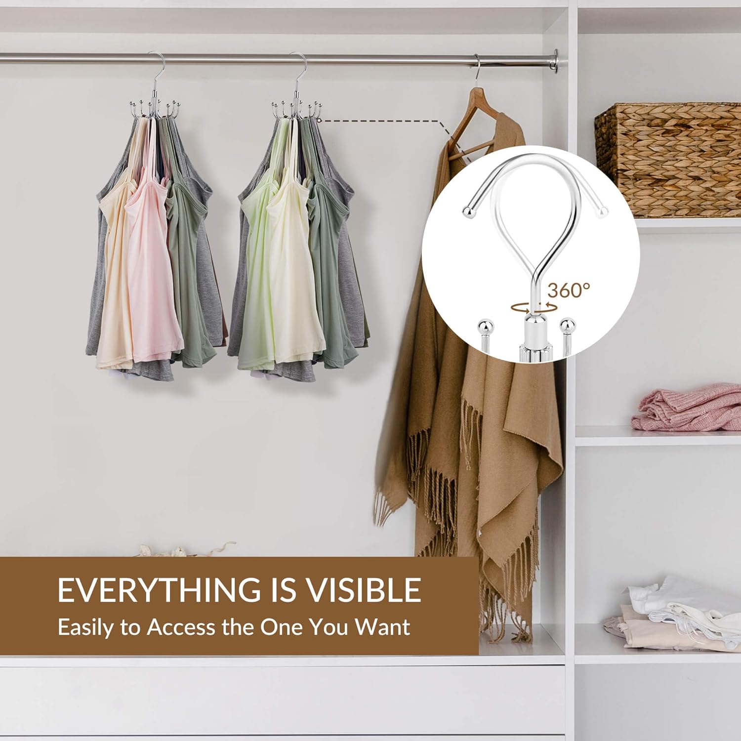 - 360Β° Rotatable Hook: The 360Β° rotating top hook allows for effortless access to all garments, enabling you to select any bra or tank top from any angle with ease.