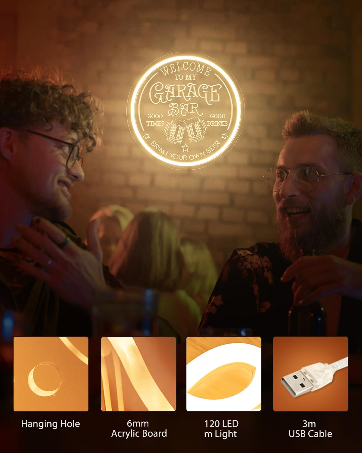 - 🛡【3D Engraving Process】The text and graphic designs are engraved on clear acrylic panels, illuminated by neon light strip on the outer ring, which show a 3D stereoscopic effect. Strong, durable, no need to worry about heating, no risk of broken glasses, bright and noise-free, with a lifespan of up to 50,000 hours.