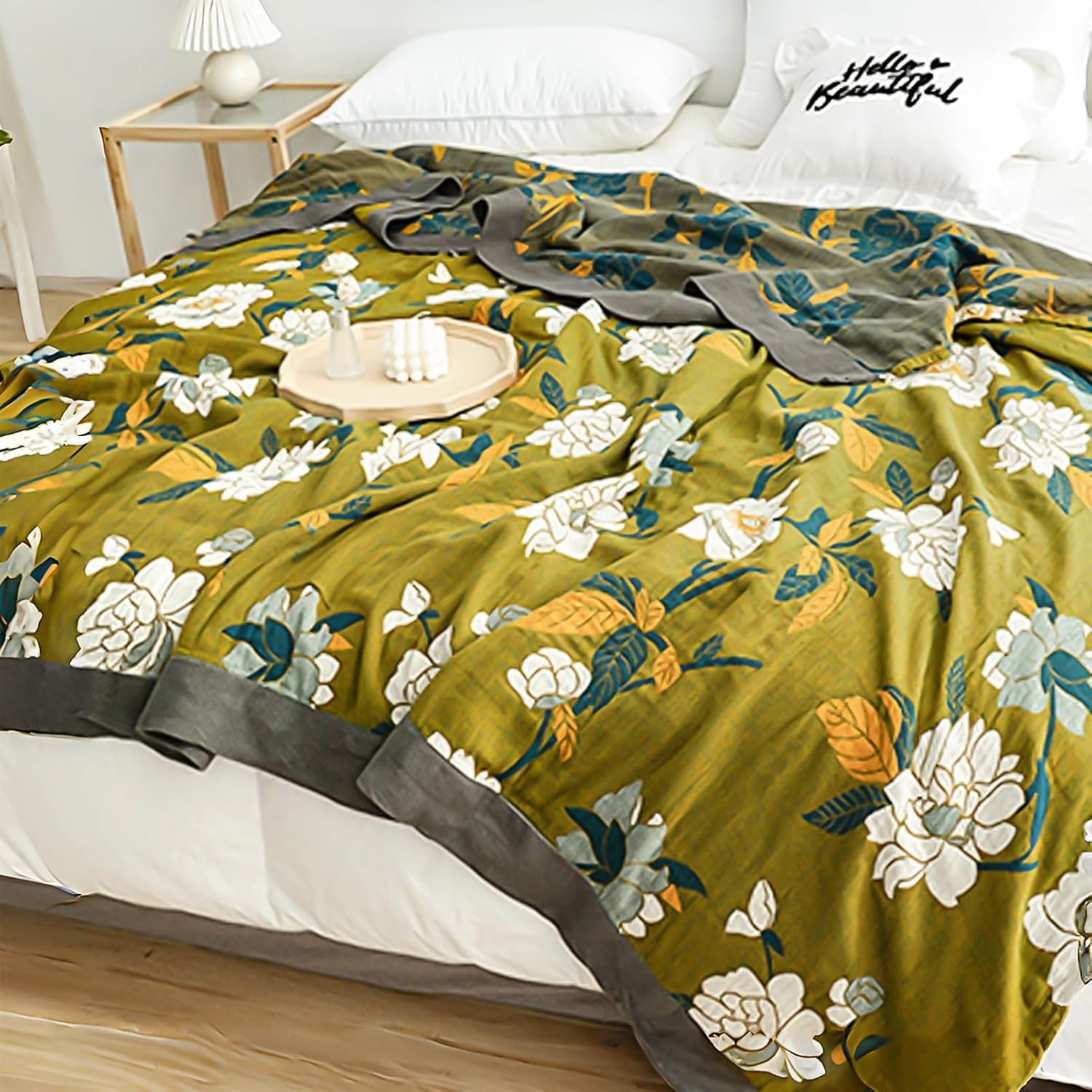 Boho Throw Blanket for Bed - 100% Pure Cotton Ultra Soft Rustic Quilt - Farmhouse Decor Bed Blankets, All Season Rustic Throw for Sofa Couch Chair(80''x 90'', Flower Branch)