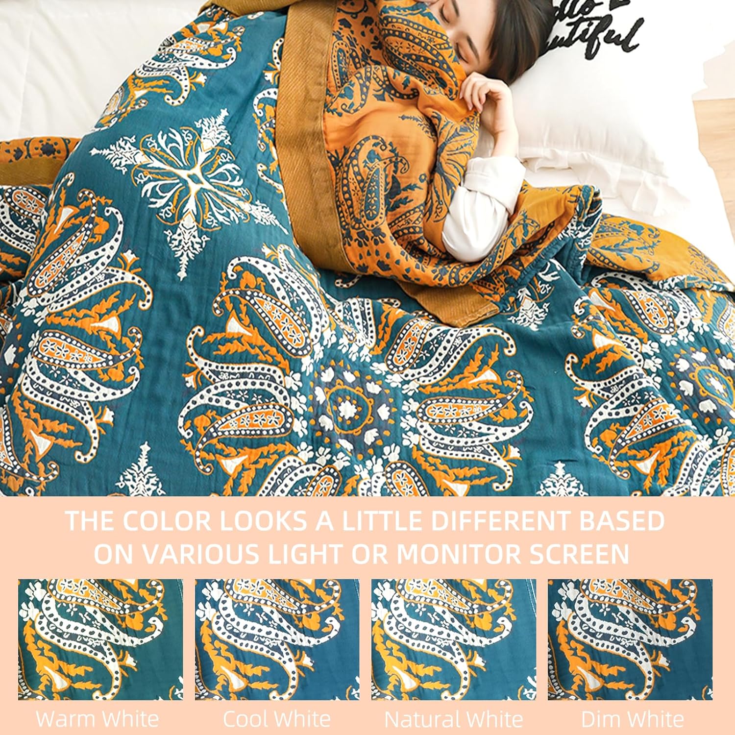 Boho Throw Blanket for Bed - 100% Pure Cotton Ultra Soft Rustic Quilt - Farmhouse Decor Bed Blankets, All Season Rustic Throw for Sofa Couch Chair(80''x 90'', Boho Floral)