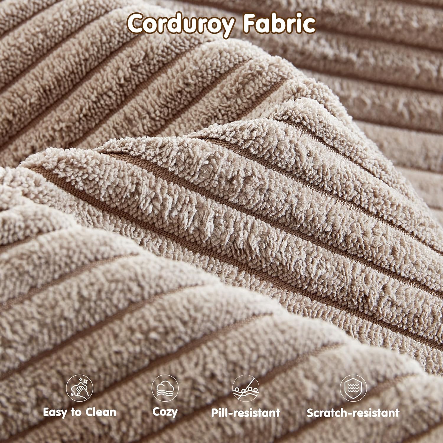 • Corduroy Fabric:Experience the lavish comfort of our enhanced corduroy fabric, offering unmatched softness and warmth. Its impressive durability and stain-fighting prowess keep your sofas looking fresh and lively. With a variety of color choices, our corduroy chaise sofa lets you showcase your unique style while adding irresistible charm to your space