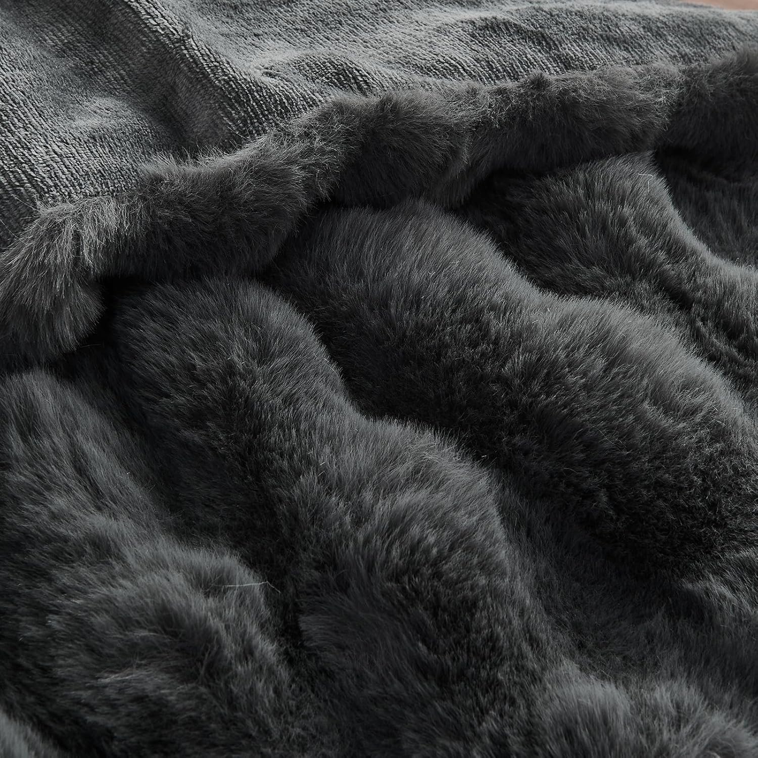 Lotus Karen King Size Faux Fur Blanket - Dark Gray, Big Bubble Rabbit Fluff, 108x90 Inches