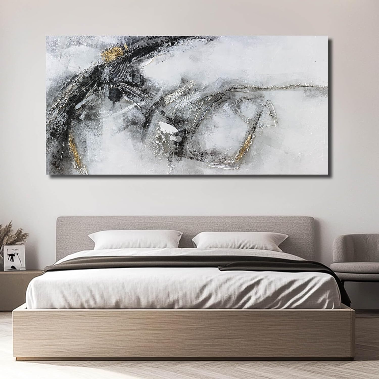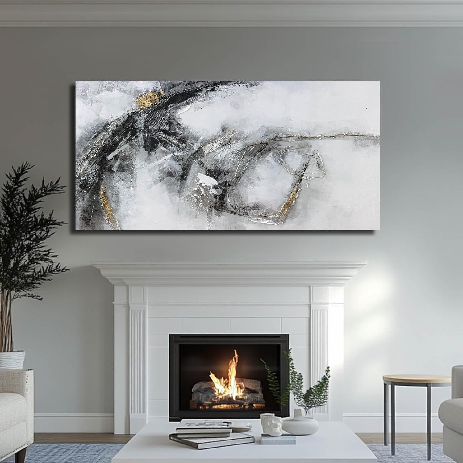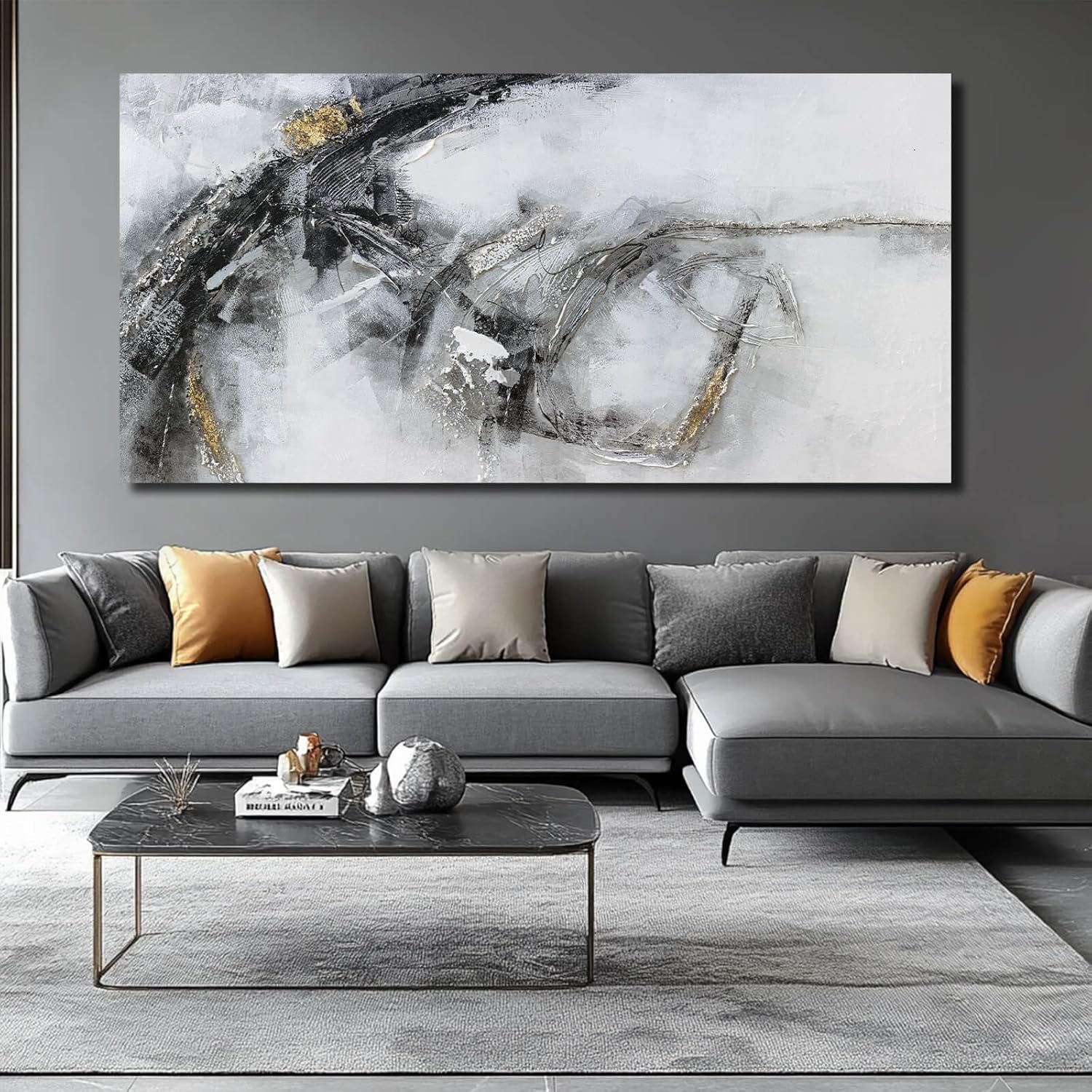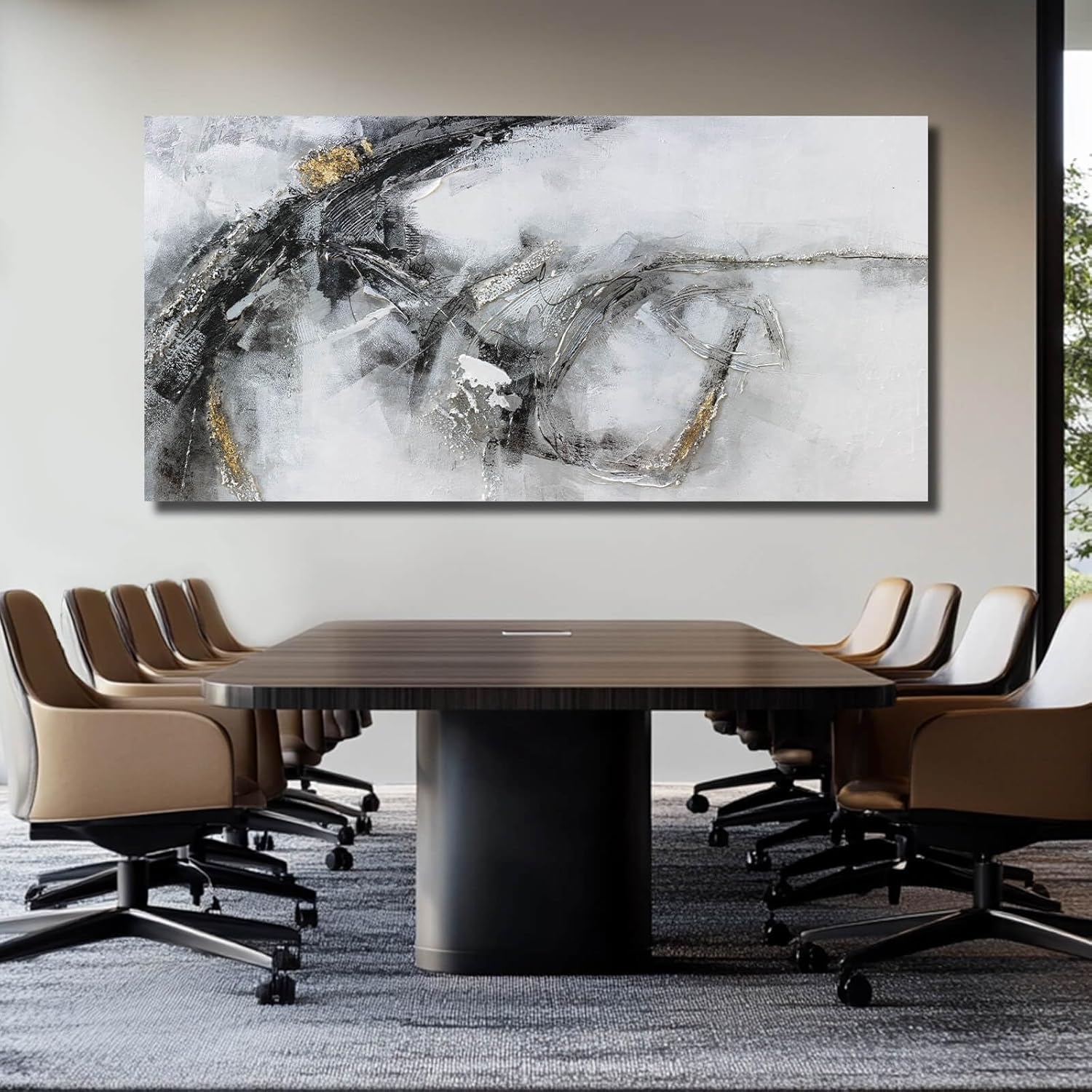 White Abstract Wall Art Black And White Wall Decorations Office Artwork Large Wall Decor for Men Room 29"x58"