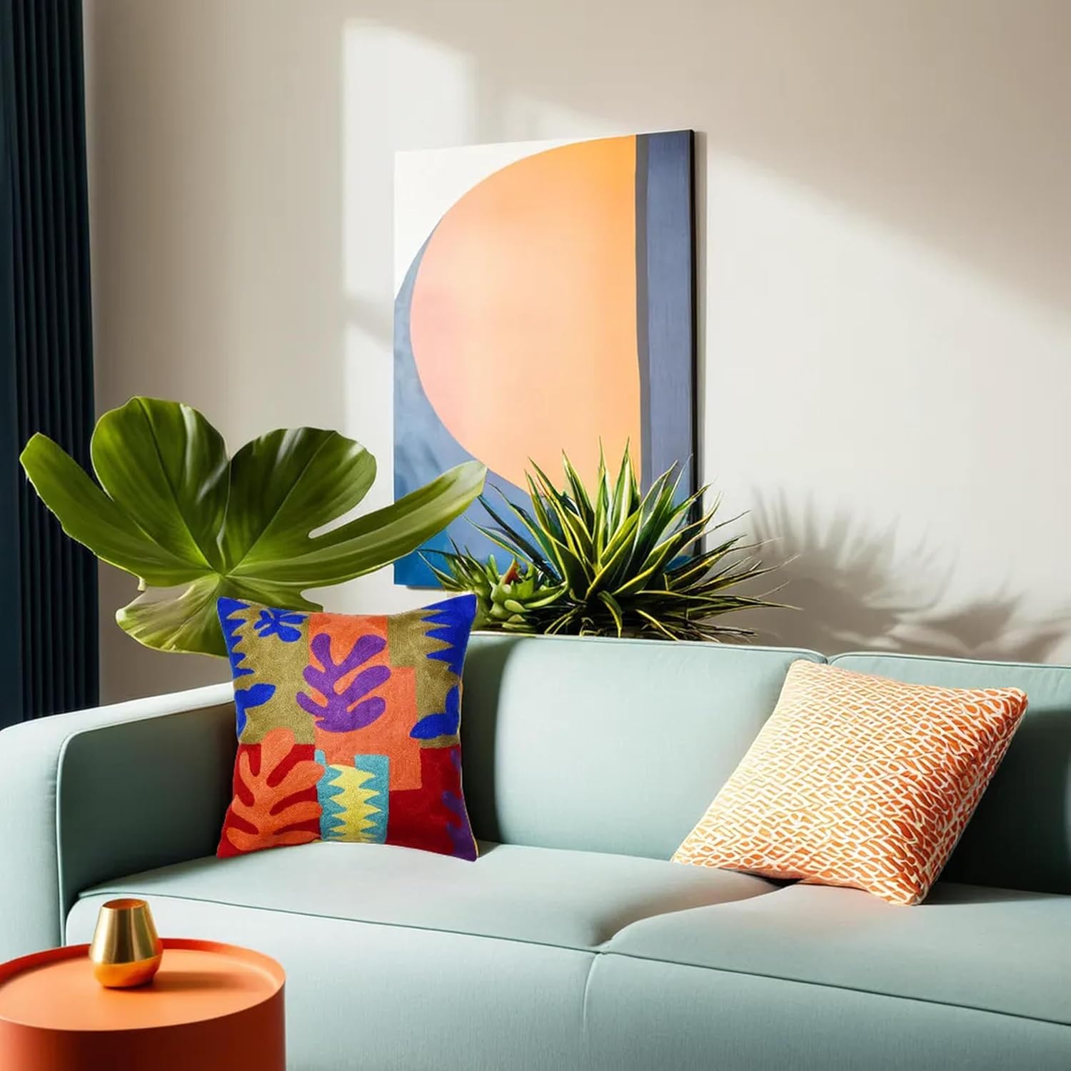 - ❤ Striking Chain Stitch Embroidery: Step into the world of Matisse-inspired design with this vibrant, hand-embroidered abstract accent pillow cover. Featuring bold forms and expressive color, it’s perfect for elevating the style of modern or transitional interiors. Whether you're refreshing a favorite cushion or styling a new space, this eye-catching piece brings artistic flair and versatility to any room or office. Ideal for both indoor and covered outdoor use.