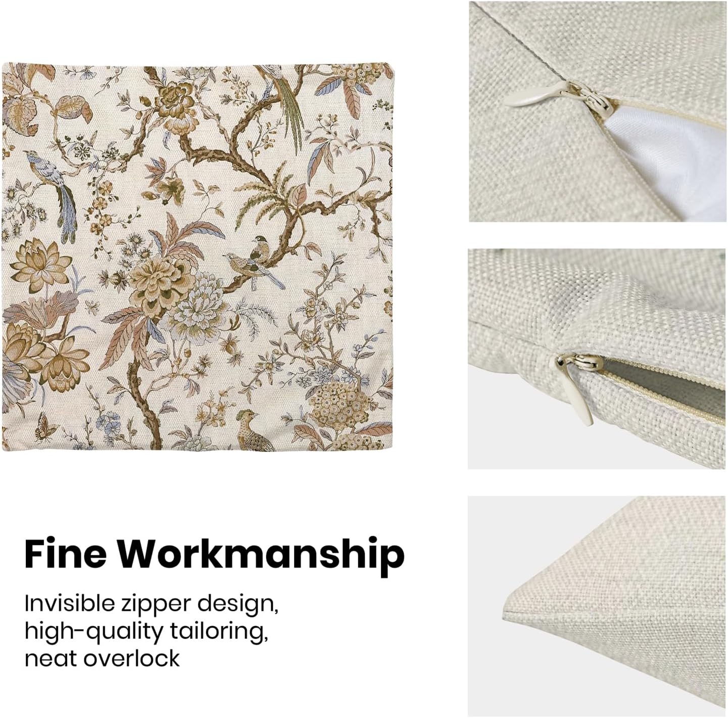 - 【Square Pillow Covers Size】 Chinoiserie flower birds pillow case set includes 2 pcs of farmhouse couch pillow covers (NO Pillow). Home decor farmhouse pillow covers measures 18x18 inch/ 45x45 cm. All the dragonfly floral decor throw pillow covers have a hidden zipper. It is easy to insert or remove the pillow core to replace the spring pillowcase. Easy to clean and wash, durable and not easy to damage.