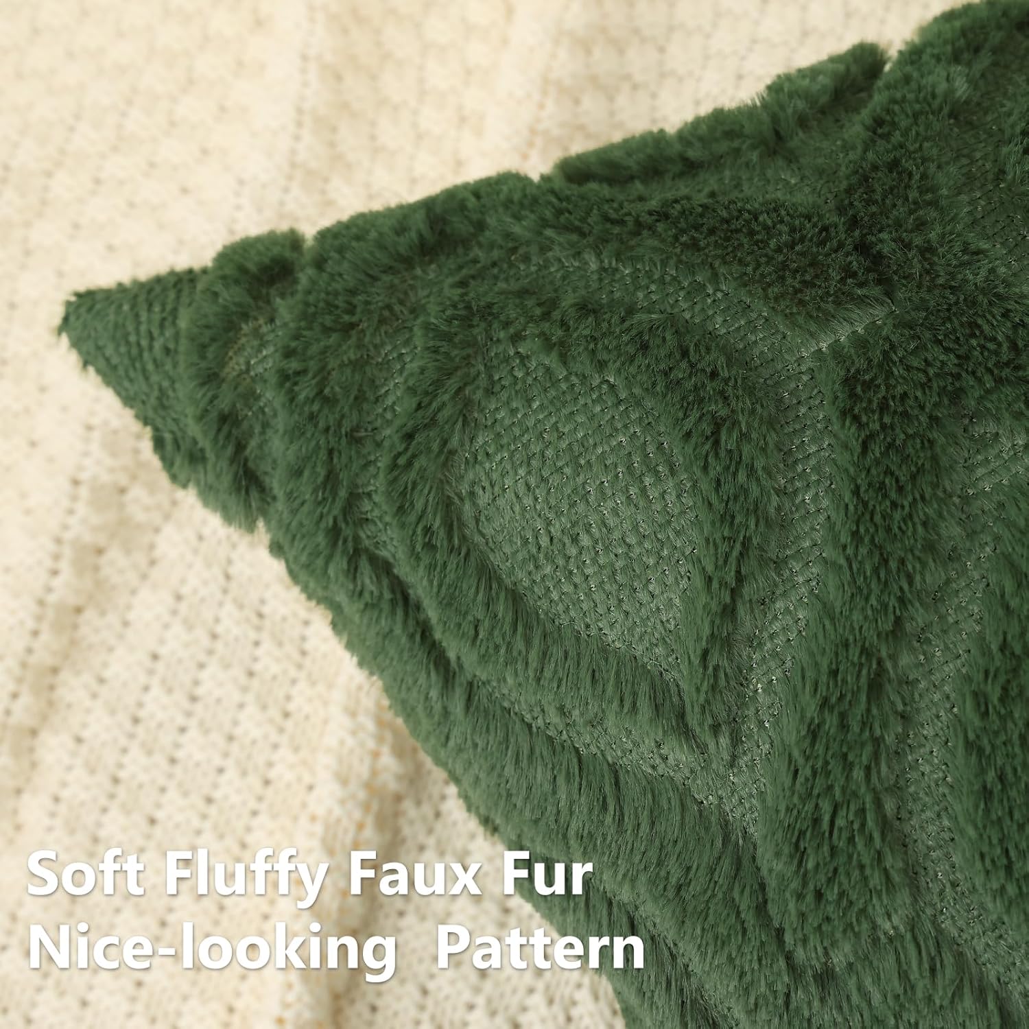 decorUhome Throw Pillow Covers 22x22 Inch Set of 2, Soft Plush Decorative Faux Fur Forest Elf Solid Couch Pillow Covers, Accent Farmhouse Neutral Square Euro Pillow Cases for Sofa Bed Living Room