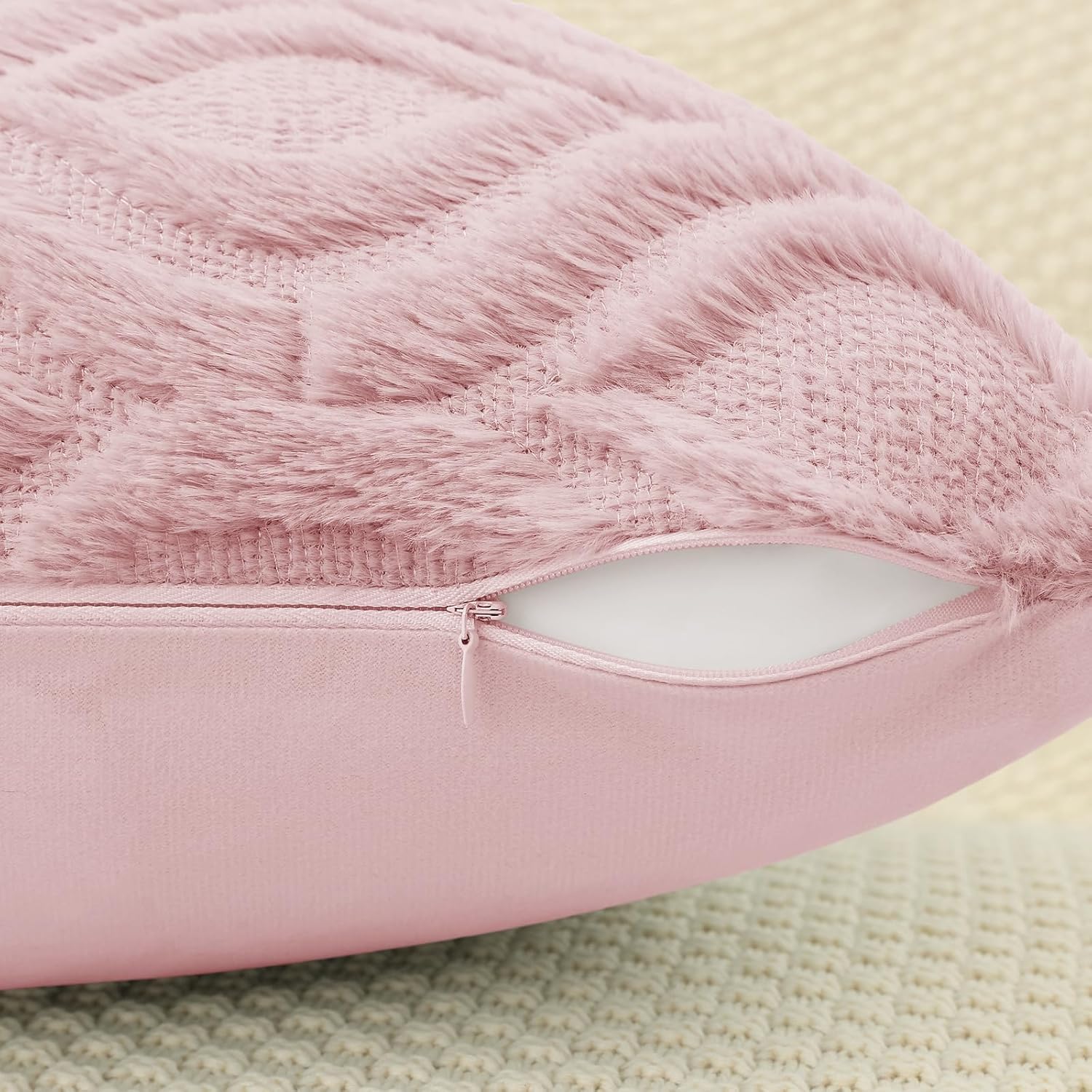 decorUhome Throw Pillow Covers 26x26 Inch Set of 2, Soft Plush Decorative Faux Fur Light Pink Solid Couch Pillow Covers, Accent Farmhouse Neutral Square Euro Pillow Cases for Sofa Bed Living Room