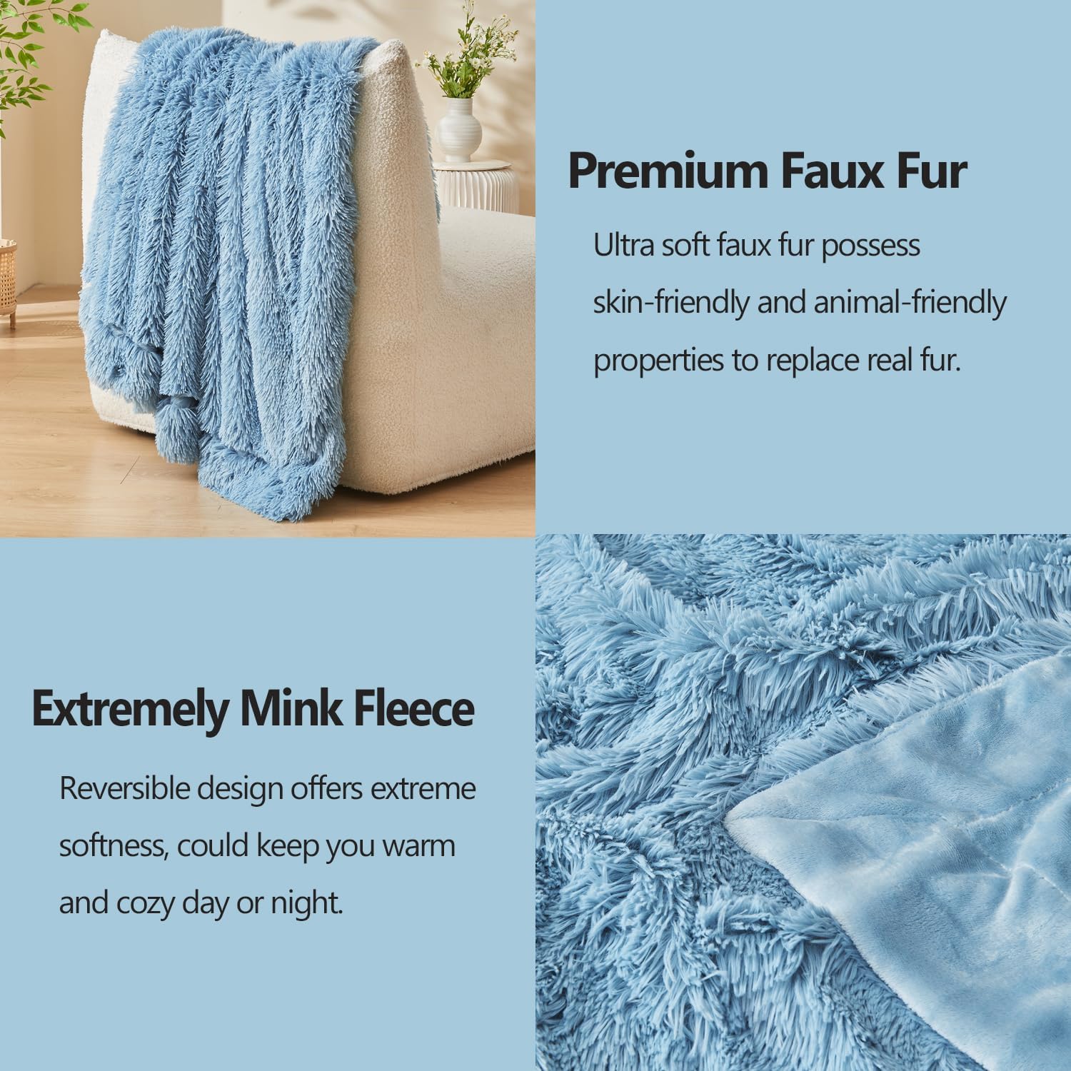 GONAAP Fuzzy Faux Fur Throw Blanket Twin Size Light Blue Super Soft Cozy Plush Fuzzy Shaggy Blanket for Couch Sofa Bed (Light Blue, Twin(60"x80"))