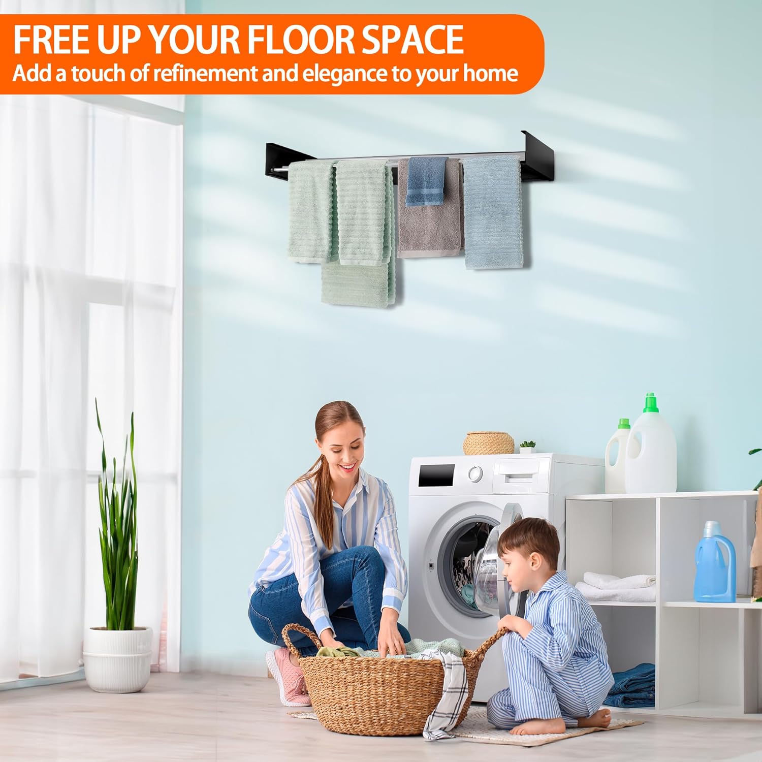 - Space-Saving Design - This laundry drying rack is adopted with collapsible design, so you can fold it when not in use; The compact and retractable wall-mounted design maximizes limited space, adds elegance to your space, and can help free up your floor space; Unfolded Size: 31.5"(L) x 15.7"(D) x 3.9"(H); Folded Size: 31.5"(L) x 1.0"(D) x 3.9"(H)