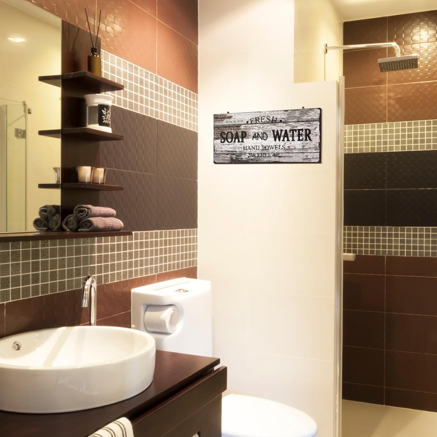 Jetec Farmhouse Bathroom Decor, Fresh Soap and Water Sign Vintage Bathroom Wood Plaque Rustic Wall Decor for Wall Art Decoration Restroom(Novel)