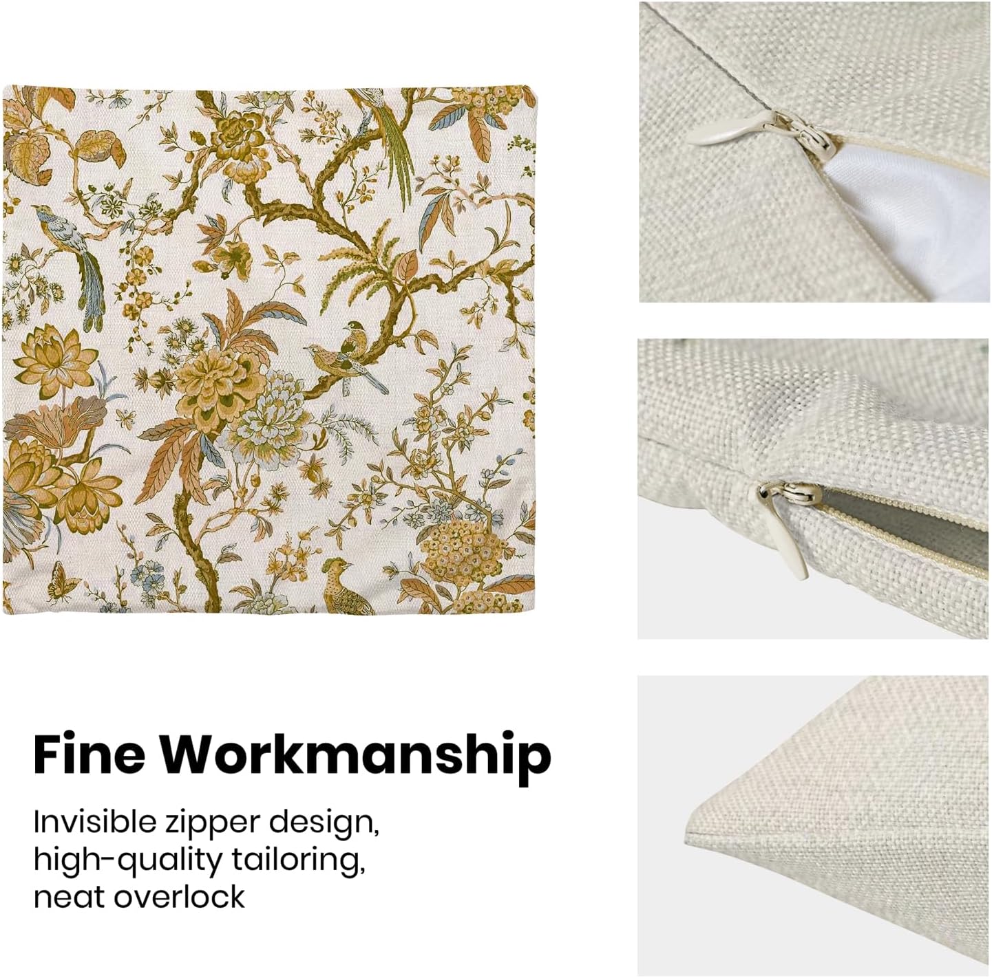 - 【Summer Pillow Covers】 Our Chinoiserie floral throw pillow covers 16x16 inch are made of excellent breathable polyester cotton fabric. The mustard yellow floral decorative pillow covers is durable, soft and skin-friendly. The plant outdoor pillow covers adopt exquisite edging technology and four sides of our spring pillow covers are sewn firmly, which is not easy to open the line.