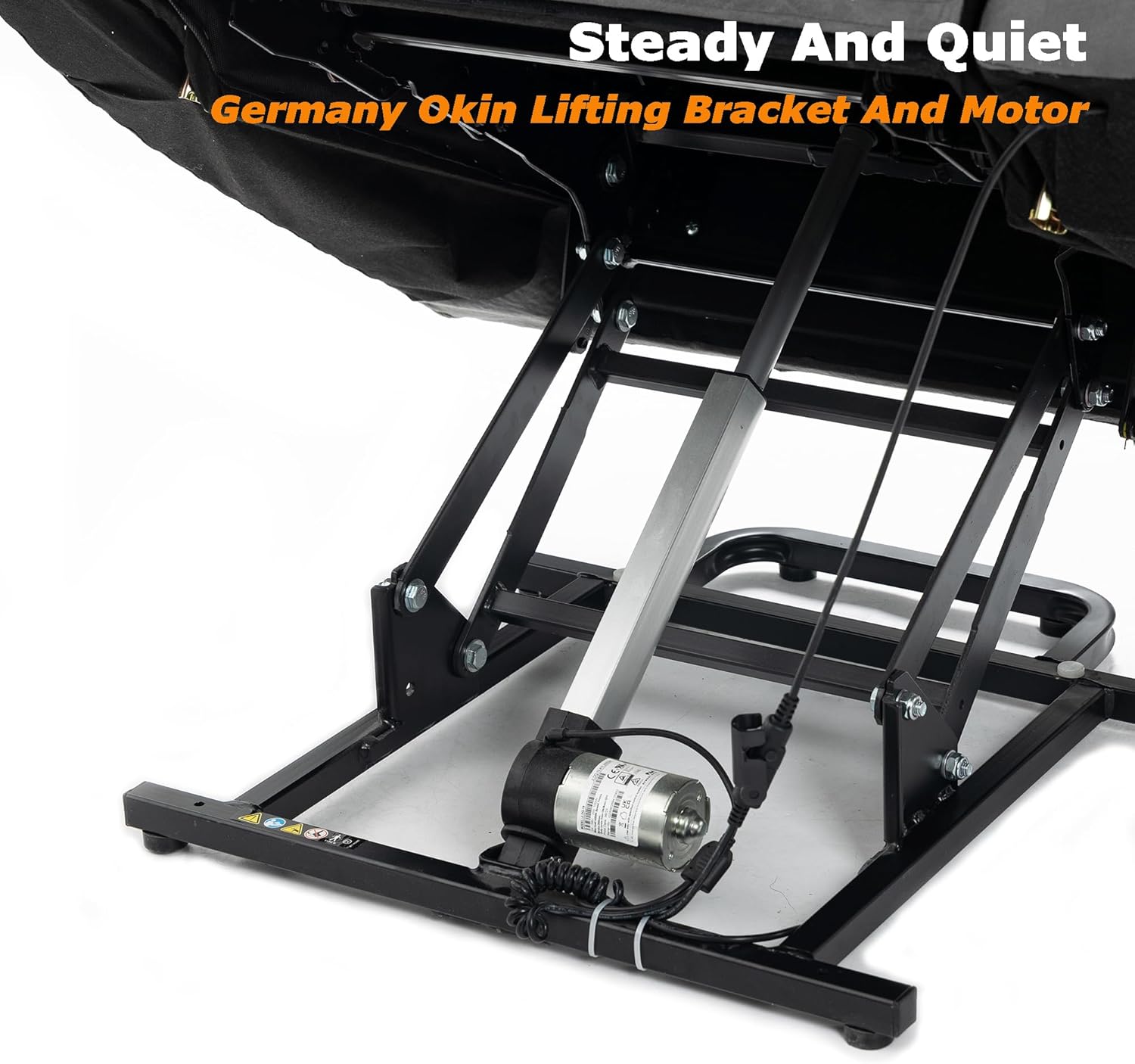 - ăSturdy-MaterialăOur power lift recliner chair for elderly is made of upgraded Velvet, which is soft, anti-pilling, and anti-fuzzing. The entire cushion is filled with high-density sponge, which will not collapse after sitting for a long time. The bottom is supported by independent unit springs, The thickened OKIN alloy steel bracket ensures that it can withstand a weight of 350 pounds and can still operate stably or assist in standing without any shaking.