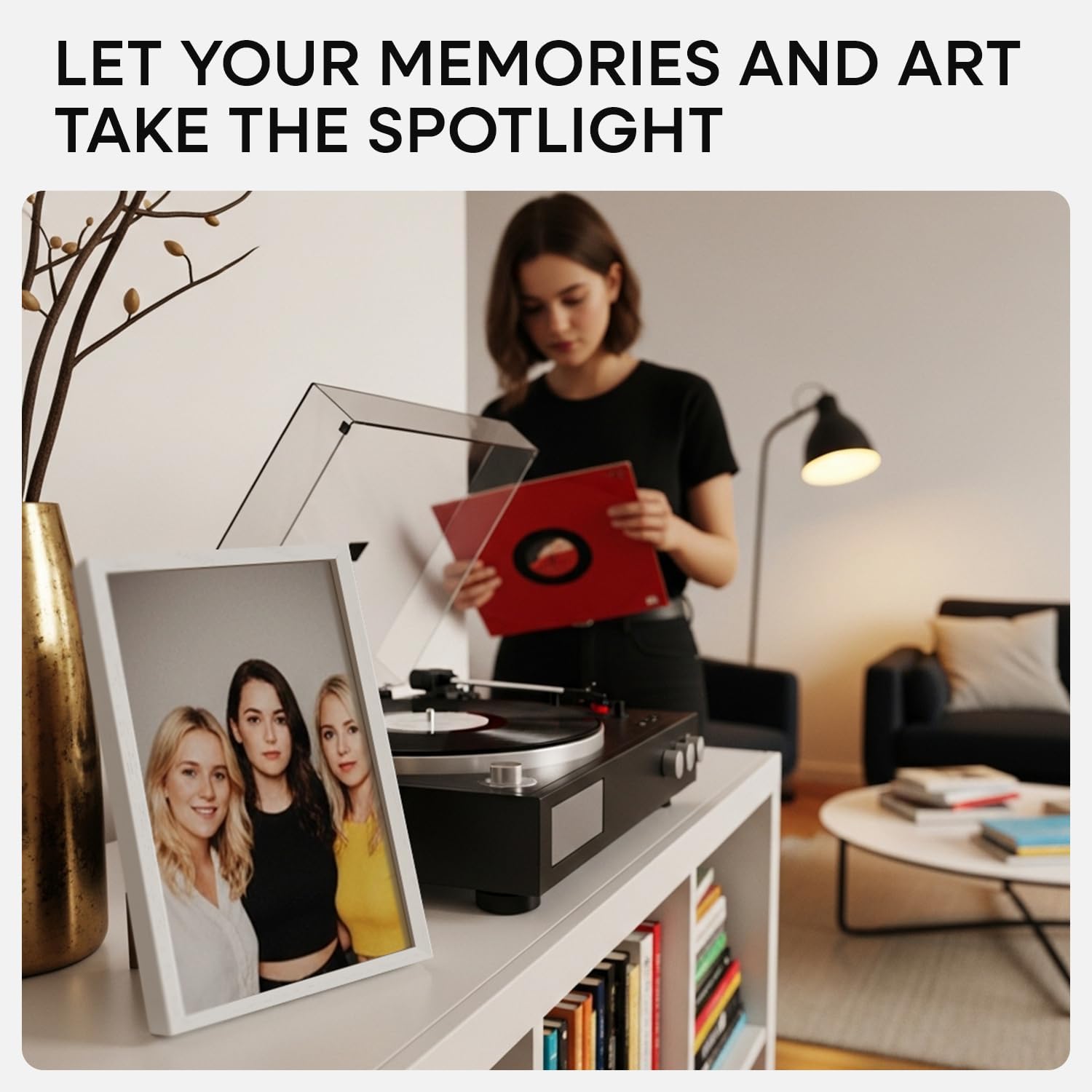 • GALLERY GRADE GLASS, TRUE CLARITY. Why settle for cloudy plexi? Our ultra-clear tempered glass sharpens every detail and adds instant polish to your photo or print.