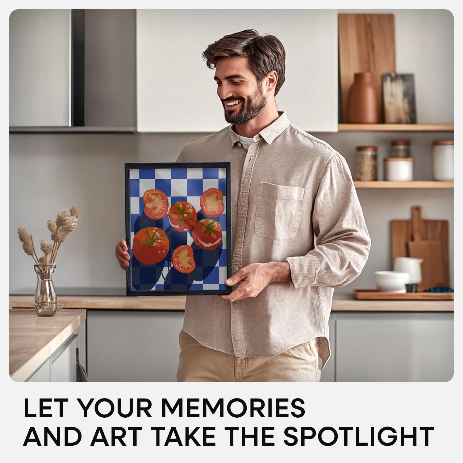 - DEEP MATTE BLACK, NOT SHINY OR FAKE Crafted in solid oak with a soft-touch matte finish, this frame offers a sleek black edge with real texture and high visual impact.