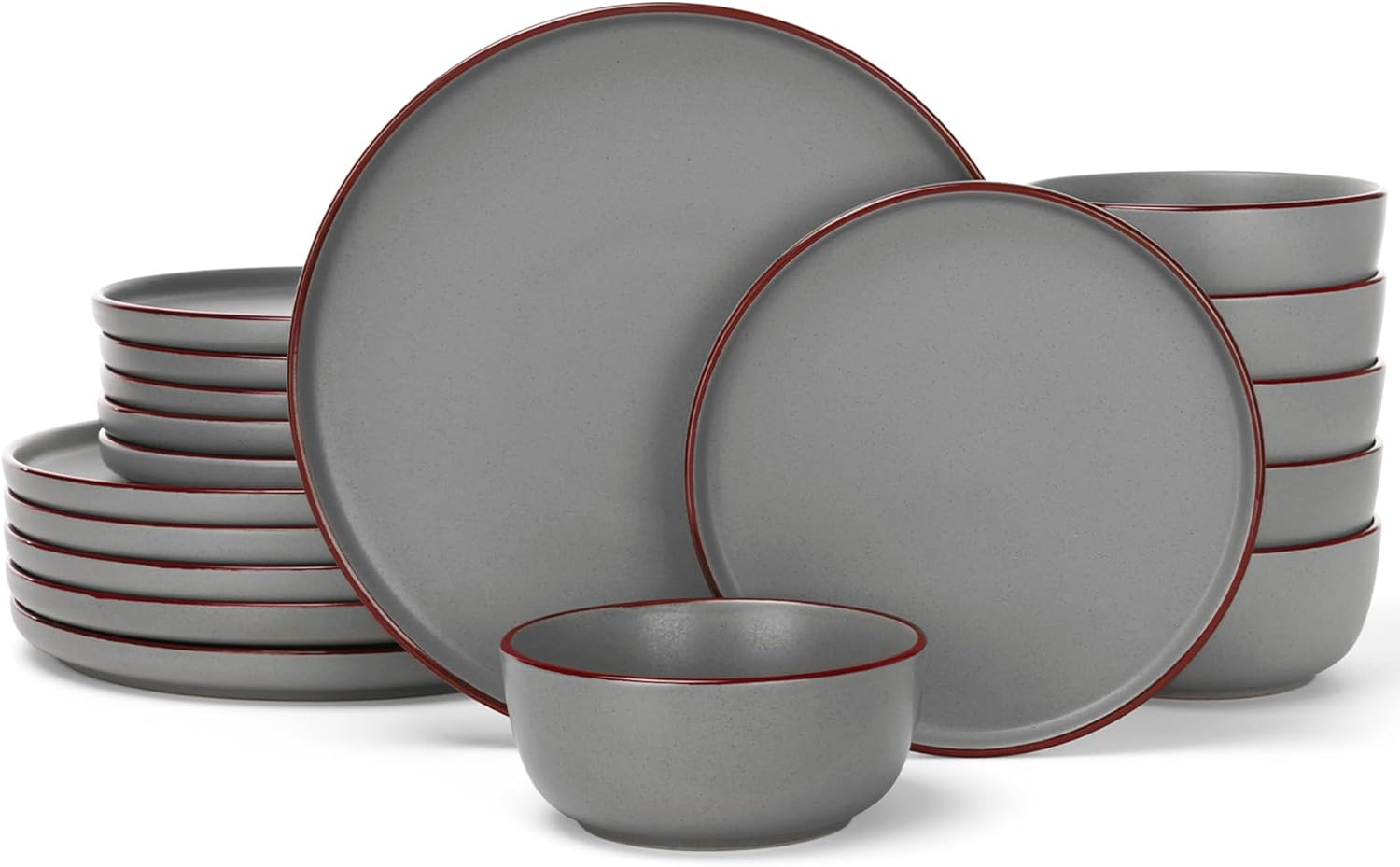 Famiware Mercury Plates and Bowls Sets, 18 Pieces Stoneware Dinnerware Sets, Dishes Set for 6, Microwave and Dishwasher Safe, Dark Grey