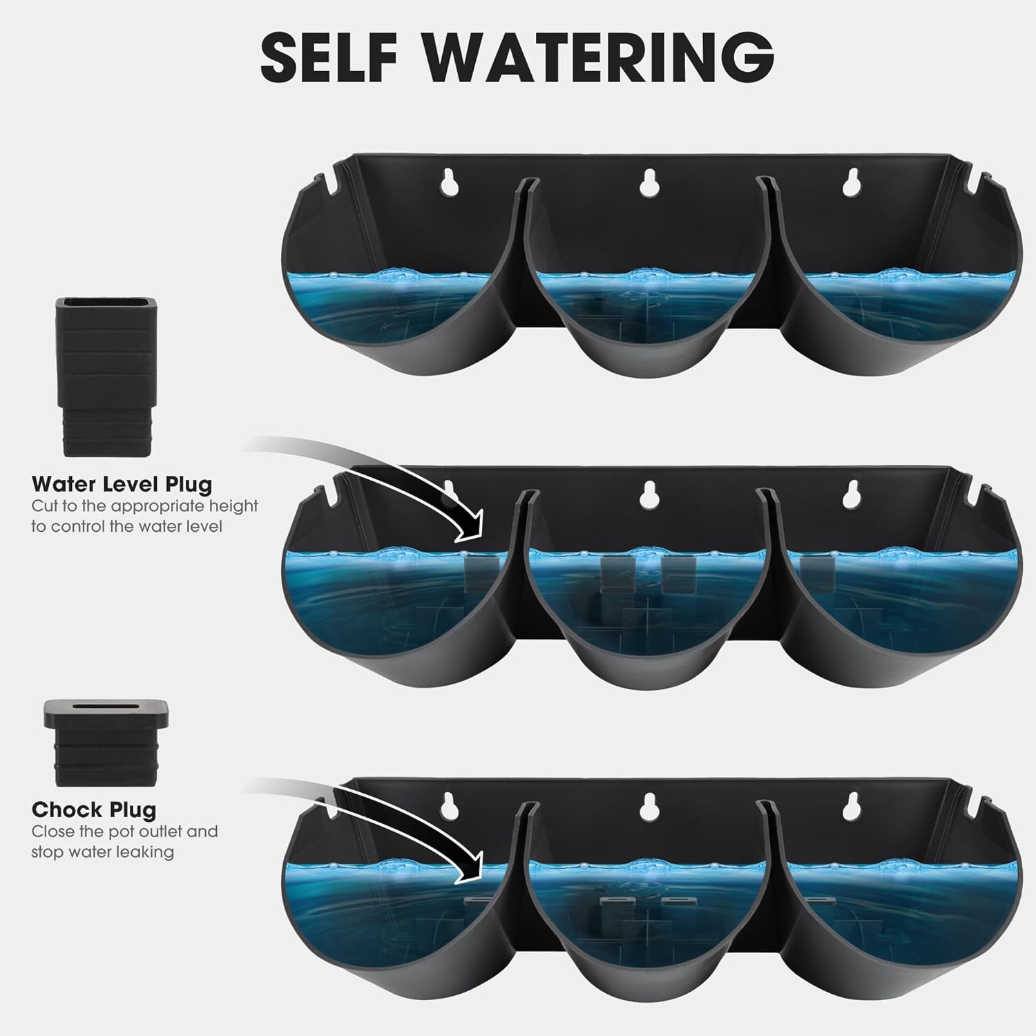 - STACKED VERTICAL DESIGN: The water filtration system from top to bottom can effectively save and retain moisture; Includes 6x water filter panels used to prevent leaves and solid impurities from blocking the outlet of the pots, 24x water level plug used to control the water level and 24x chock plugs to close the pot outlet and stop water leaking