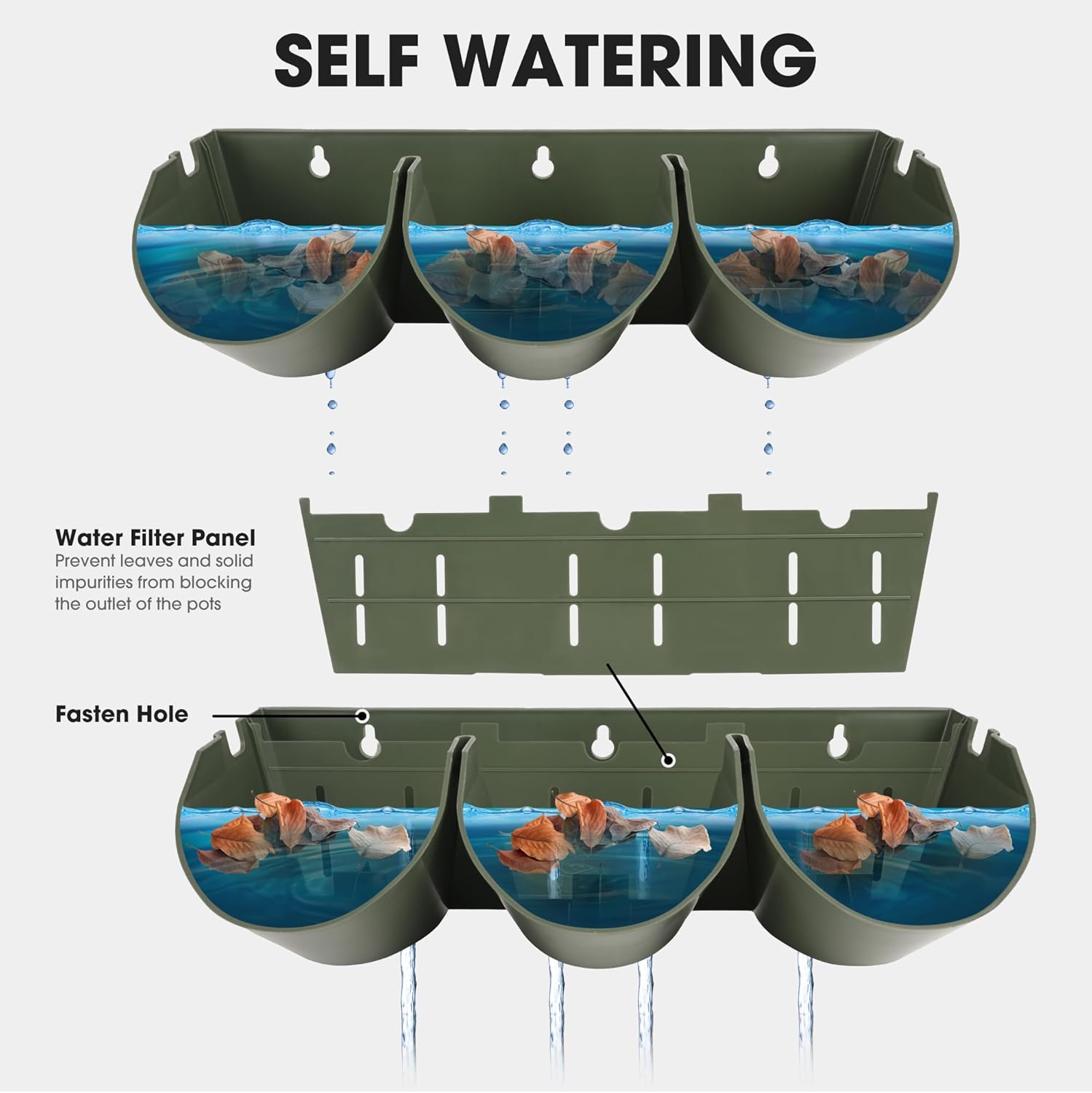 Worth Garden Upgraded 6 Sets (18 Pockets) Self Watering Stackable Vertical Planters - Wall Mounted Plastic Plant Grow Pots for Strawberries Flowers Herbs - Indoor Outdoor Green Wall Decoration (Green)