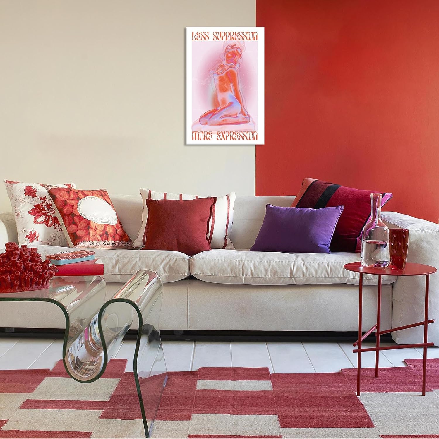 Spiritual Affirmation Art Poster Pink Woman Canvas Wall Art Aesthetic Pictures Sexy Woman Prints Painting Trendy Gradient Aesthetic Wall Decor Living Room Bedroom 12x16in Framed
