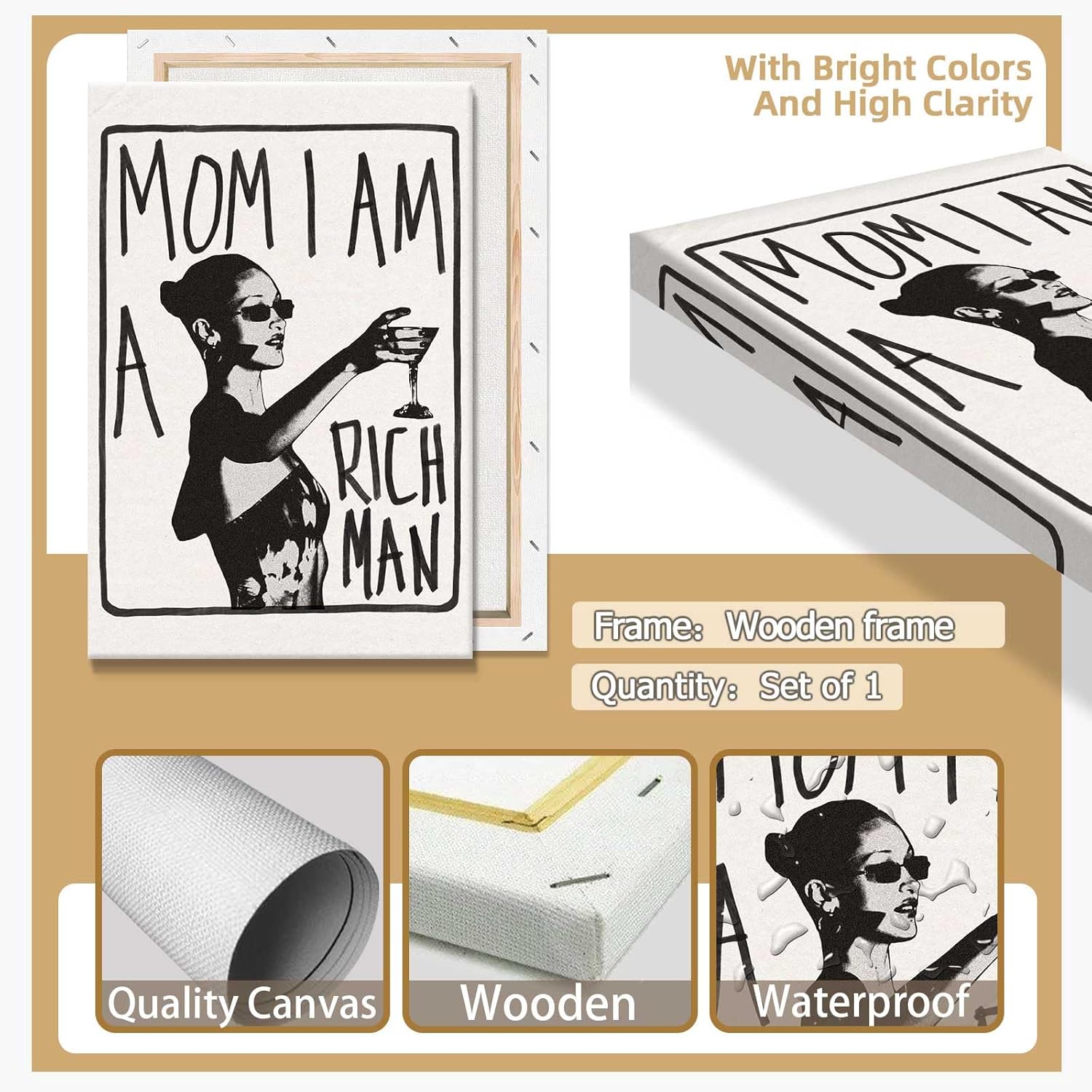 Mom I Am A Rich Man Aesthetic Retro Music Goblet Poster Feminist canvas Wall Art Vintage Bar Cart Wall Decor Preppy Dorm Decor Unique Wall Art prints painting 12x16in Framed
