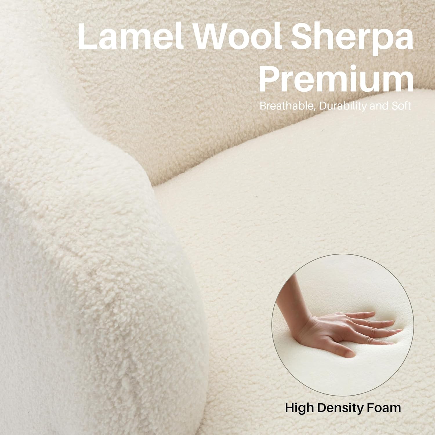 - Fabric Barrel Chair: This elegant swivel chair is adorned with Sherpa, known for its soft and skin-friendly texture. Enjoy superb comfort and support with the plush high-density foam cushions, allowing you to sit for hours on end. In addition, the ergonomic curved backrest of the upholstered seat provides additional comfort and allows you to fully relax in the swivel chair.