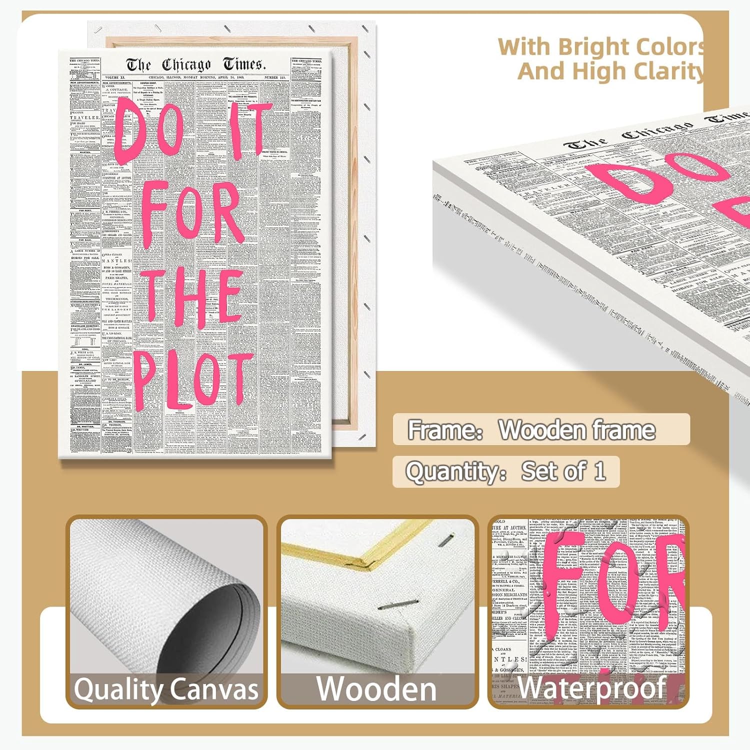 - 【Trendy Newspaper Poster Size 】12x16 in (30x40cm), 16x24 in (40x60cm), 24x36 in (60x90cm) Framed,Modern Minimalist Home Decor Canvas Wall Art Is Perfect for Your Home Fashion Prints Wall.