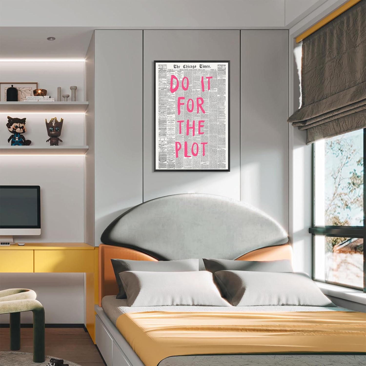 Liyark Retro Black And White Chicago Newspaper Poster Pink Trendy Preppy Apartment Art Motivational Affirmation Do It For The Plot Prints For Home Bedroom Living Room Wall Decor 16x24in Framed