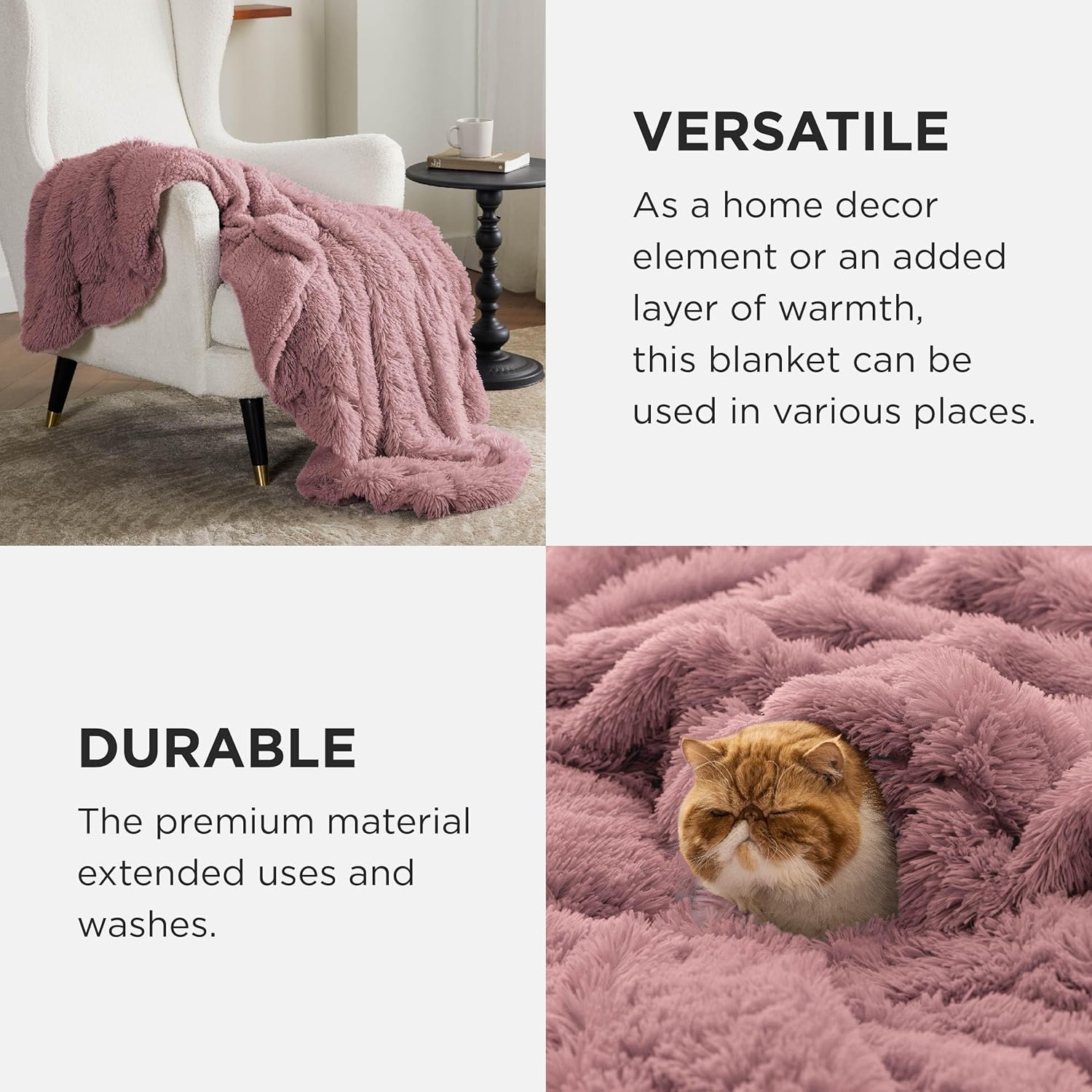 Bedsure GentleSoft Fluffy Dusty Pink Blankets Queen Size for Bed, Thick Sherpa Faux Fur Fleece Fuzzy Plush Winter Warm Soft Queen Blankets, Bedroom Decor Pink Gifts Cozy Gifts for Women Men, 90x90