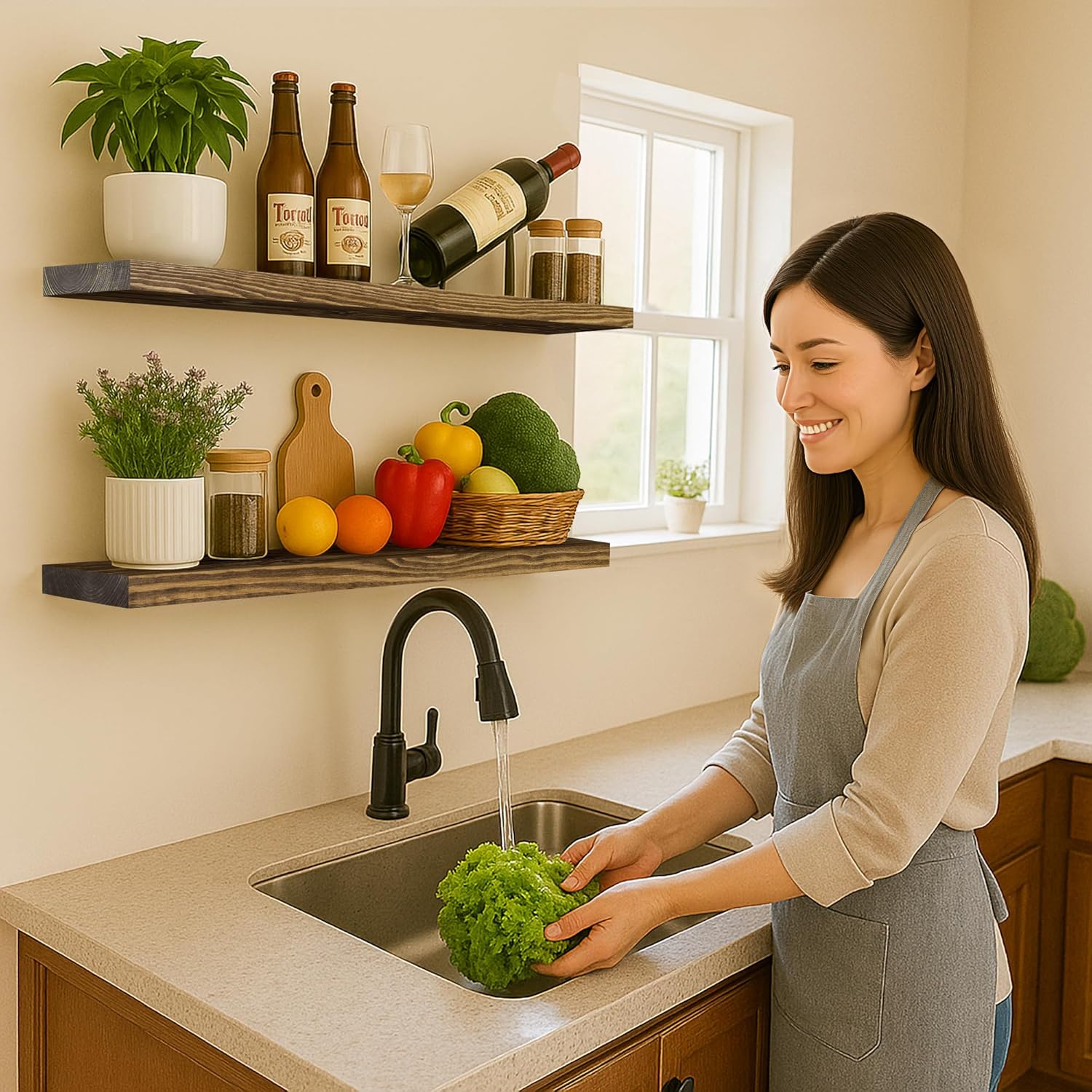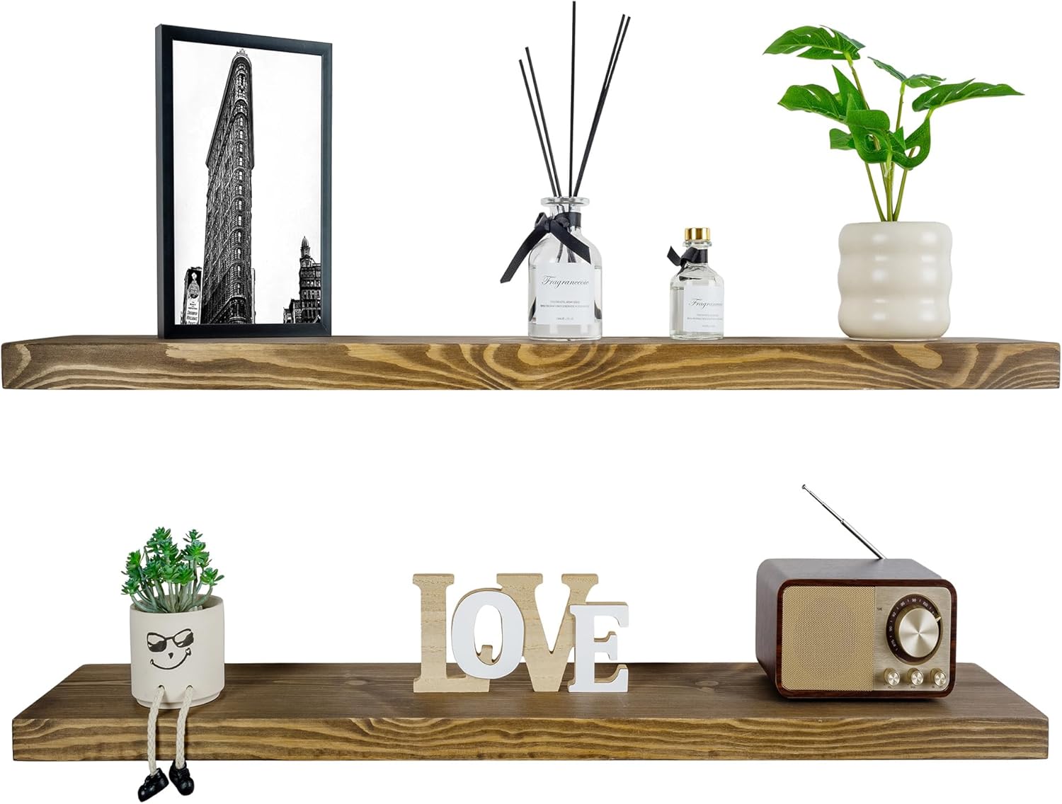 - MODERN RUSTIC LOOK - The floating shelves are made of 100% natural pine, and the wood has different nodes and grains, so the color of each shelf may be slightly different, but equally stunning!
