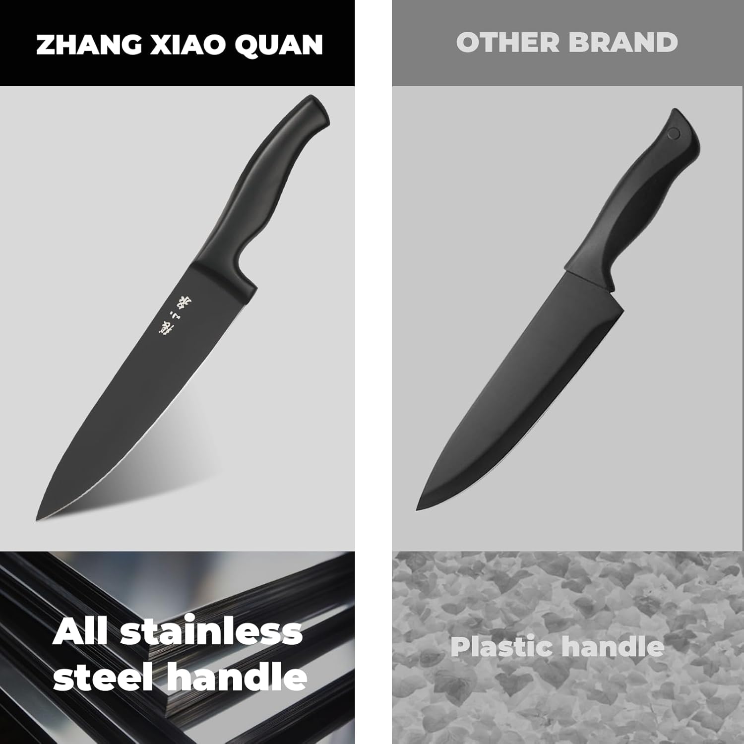 ZHANG XIAO QUAN SINCE 1628 15Pcs Knife Sets with Block, knife sets for kitchen with block High Carbon Stainless Steel Built-in Sharpener Dishwasher Safe(Black)